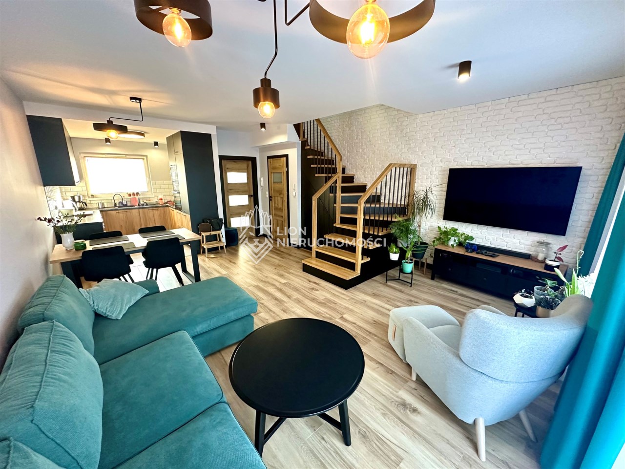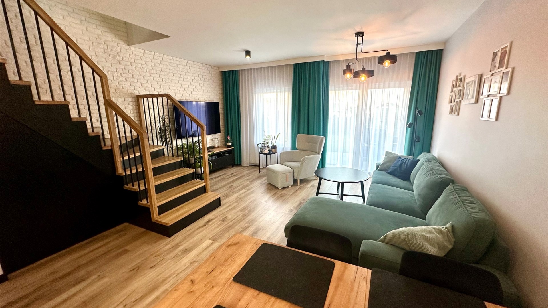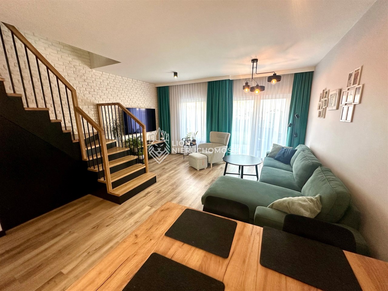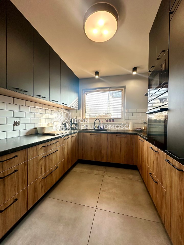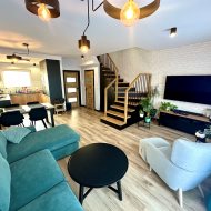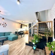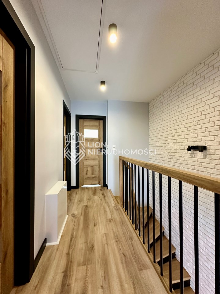 Lokal wykończony w podwyższonym standardzie wykończenia. Zabudowy wykonane na zamówienie, drewniane schody dębowe.