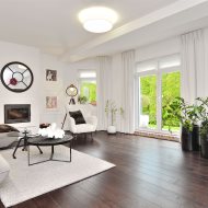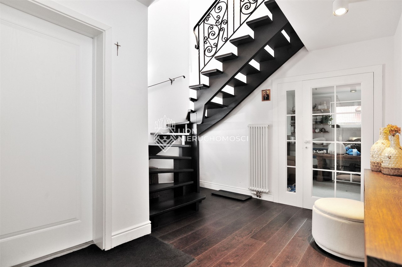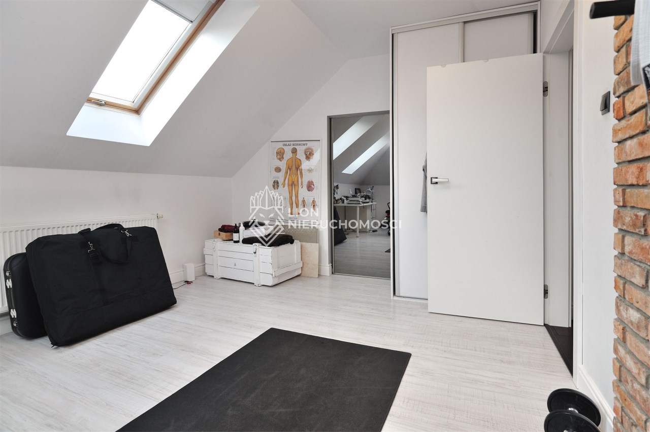 Parter domu składa się z przestronnego salonu z kominkiem, otwartej kuchni z jadalnią, dodatkowego pokoju/gabinetu oraz łazienki. Na tym poziomie znajduje się również pomieszczenie gospodarcze. Na piętrze znajdują się trzy duże sypialnie, z osobnymi garderobami, oraz łazienka z ogrzewaniem podłogowym.
