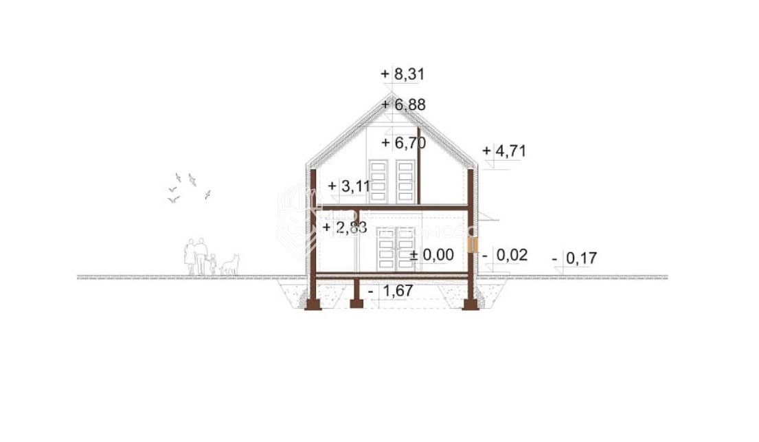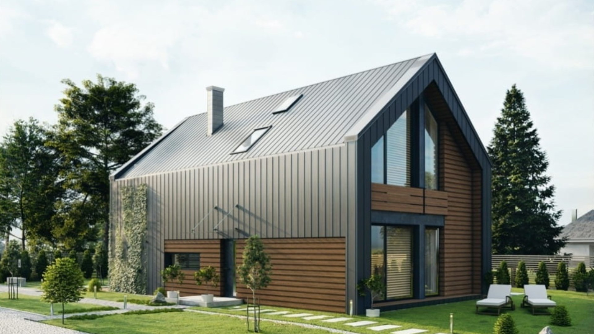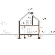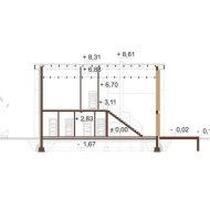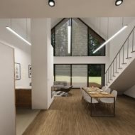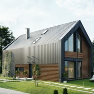 Ergonomiczny dom, zaprojektowany z myślą o praktycznych aspektach użytkowania, utrzymany w stylistyce nowoczesnej stodoły. Posiada duże przeszklenia w elewacjach bocznych, co sprawia że jest bardzo słoneczny i przytulny. Przeszklenia wraz z tarasem i ogrodem od strony południowo-zachodniej, widok na pola i lasy dzięki braku sąsiadujących działek budowlanych, dla osób ceniących prywatność.