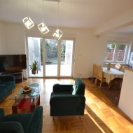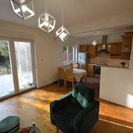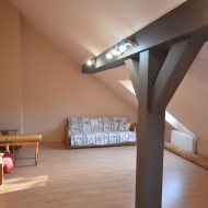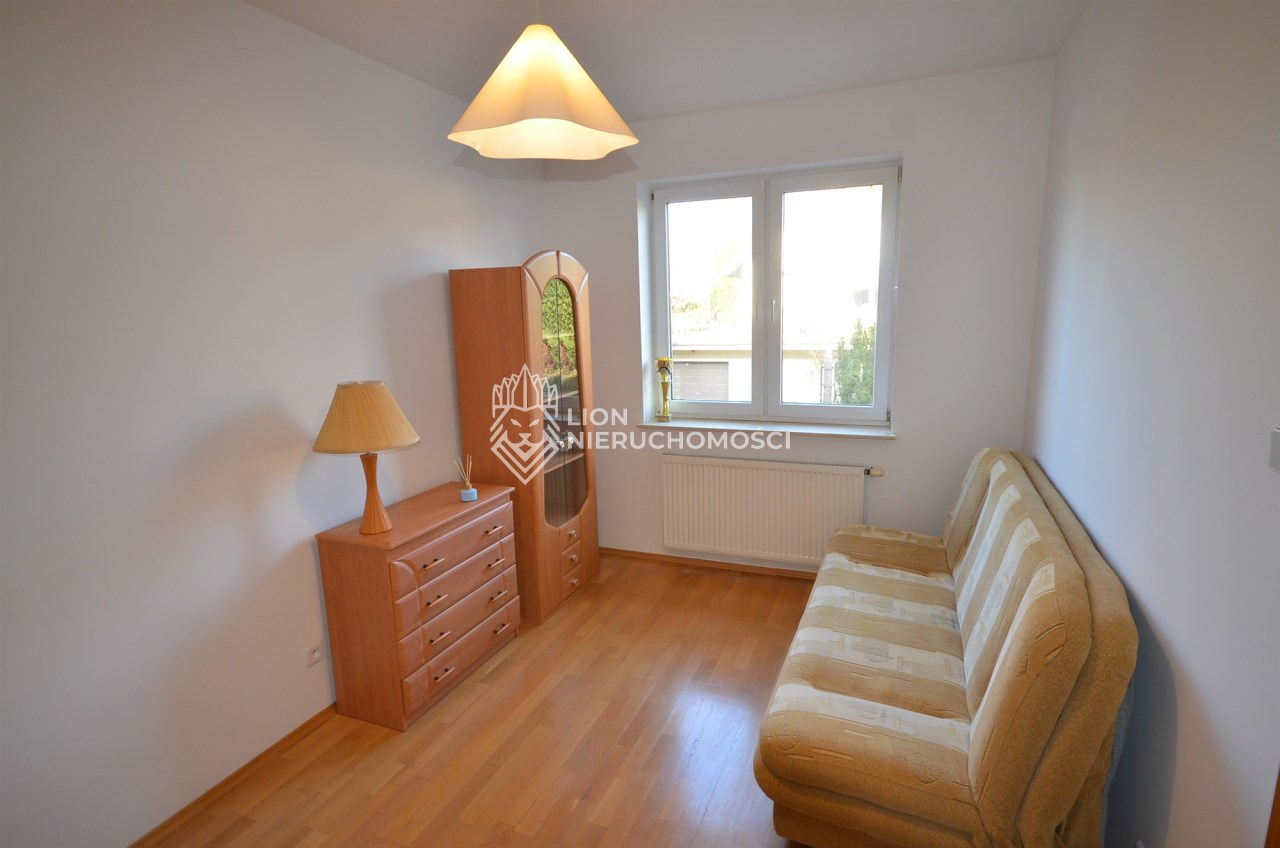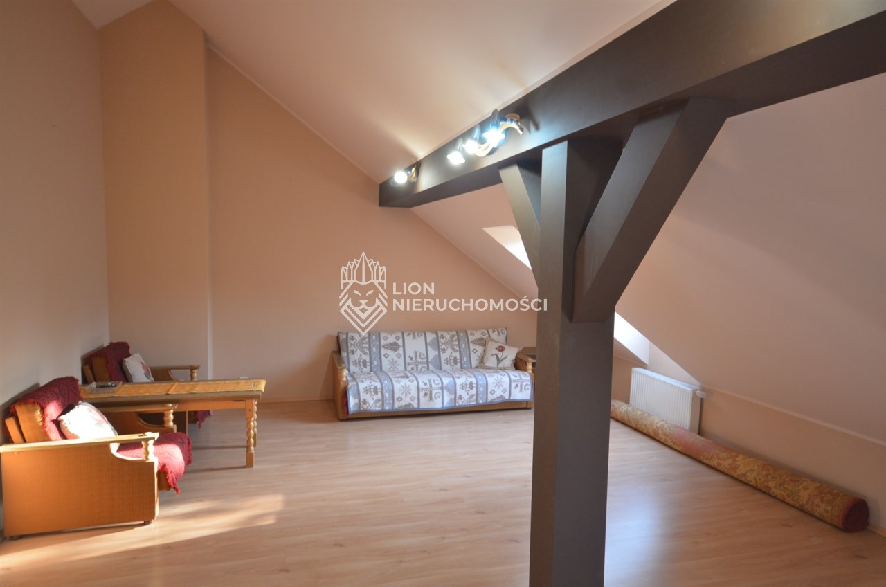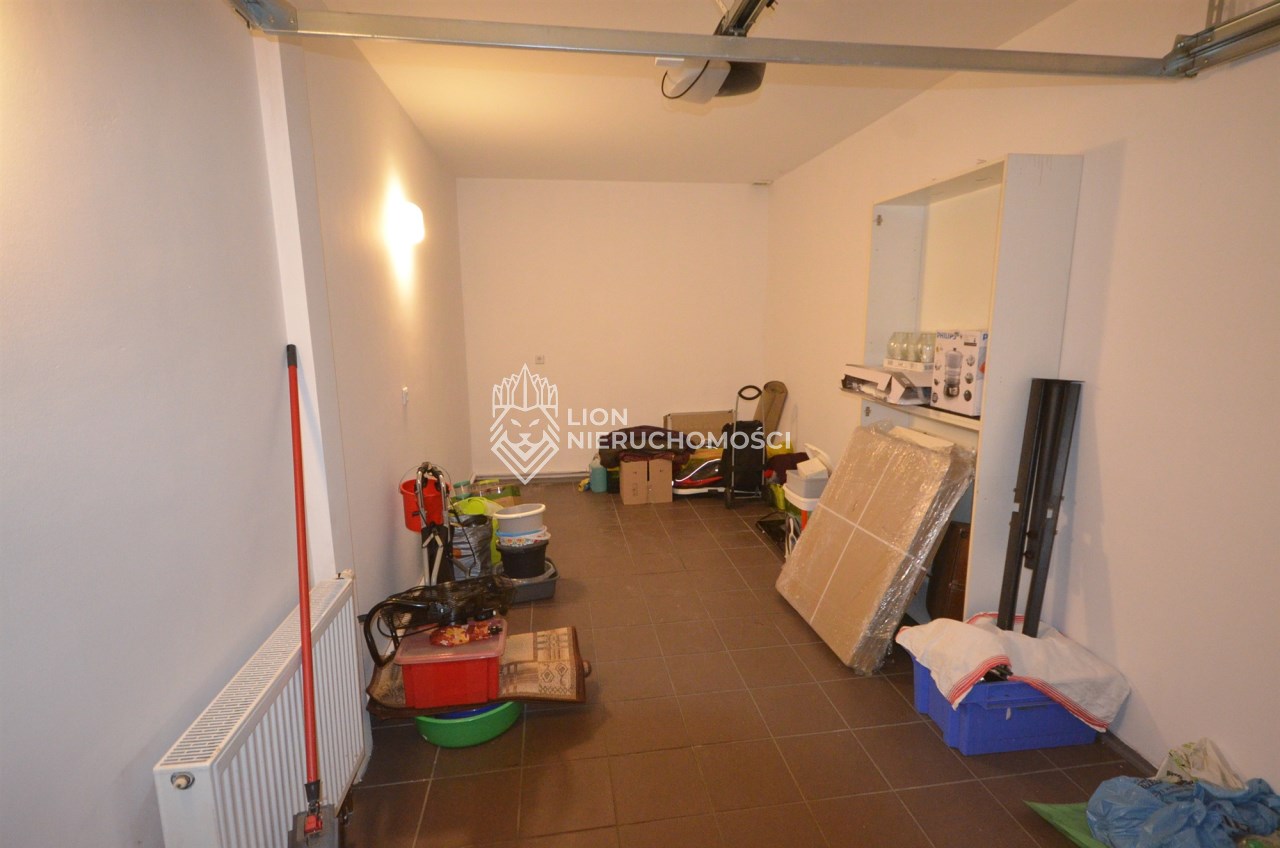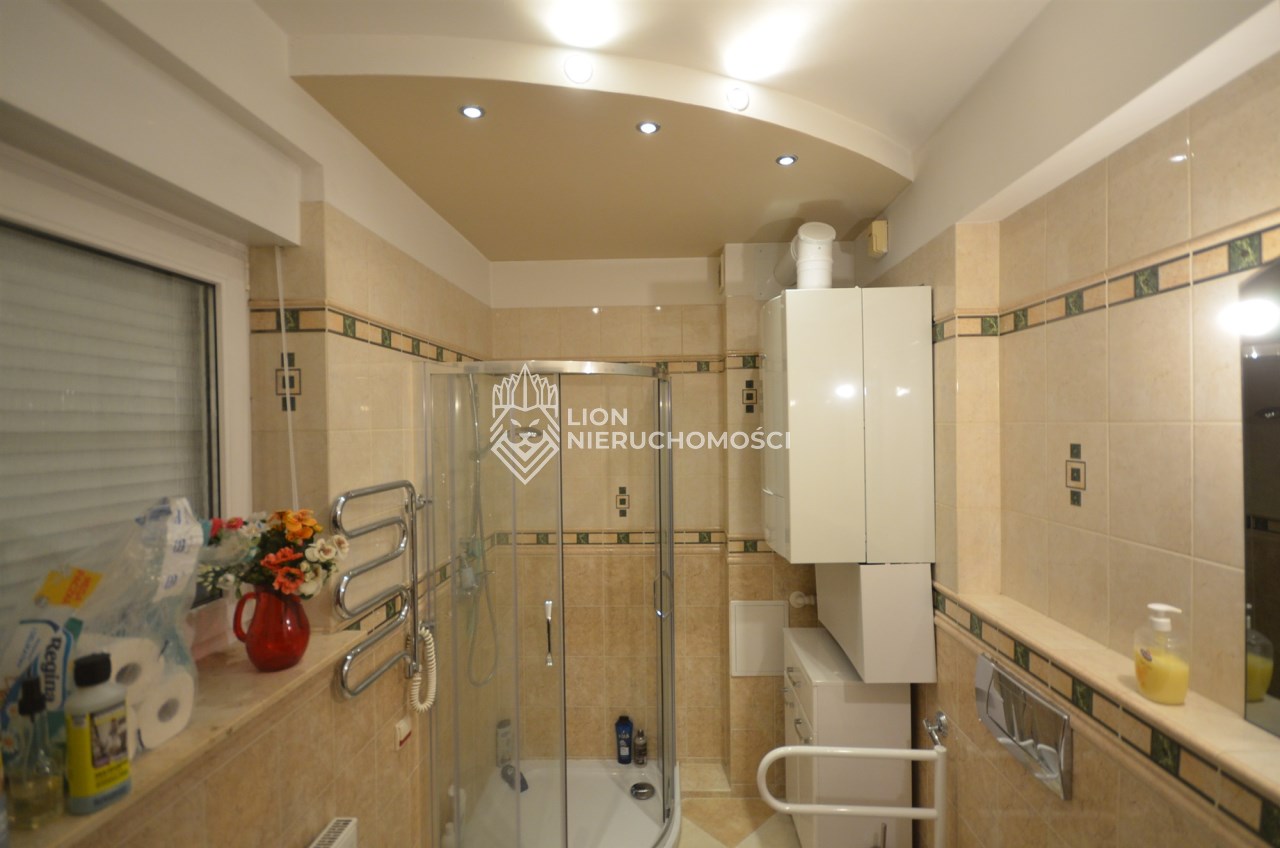 Na pierwszym piętrze znajdują się 3 pokoje, łazienka z wc i wanną. Na poddasze prowadzą również drewniane schody i jest tam zagospodarowany pokój, łazienka z wc oraz duży otwarty pokój z widokiem na ogród. Nieruchomość w pełni umeblowana w standardzie powyżej średniej, po remoncie 3 lata temu . Brama wjazdowa automatycznie zamykana na pilota.