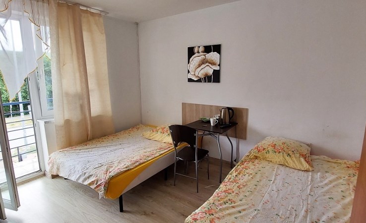 Dom wolnostojący 2-poziomowy z 1982r usytuowany na działkach o pow.462m2 z możliwością rozbudowy o następny poziom z poddaszem użytkowym włącznie . Na parterze 2 pokoje samodzielne świeżo po remoncie , po ok. 20m2 z łazienką i wc ( jeden z bezpośrednim wyjściem do ogródka ) oraz łazienka z wc . Na piętrze 5 pokoi ( jeden duży ok.25m2 , dwa następne po ok. 18m2 - 4- osobowe ) oraz 2 pokoje mniejsze 2-3 osobowe w większości z balkonem i łazienką z wc. W budynku znajdują się 2 pomieszczenia warsztatowe po ok. 12m2 każdy - z możliwoscią wykorzystania na pokoje gościnne , część podpiwniczona .Ogrzewanie centralne - kocioł ; węgiel ,drewno z możliwością przejścia na gaz, na dachu panele słoneczne 2.5kv co daje ok. 8 miesięcy podgrzewania wody za darmo. Standard średni