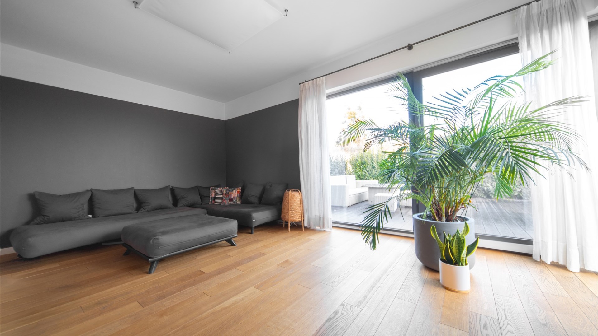 przestronny salon z wyjściem na taras,