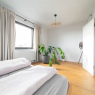główna sypialnia z widokiem na ogród.