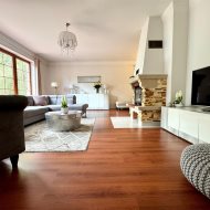 Dom został wybudowany w 1999 roku i posadowiony na przestronnej, pięknie zagospodarowanej działce o powierzchni 3325 m². Dach pokryto blachodachówką, a całość zaprojektowano z myślą o wygodnym, codziennym funkcjonowaniu całej rodziny.