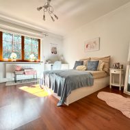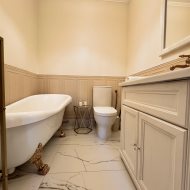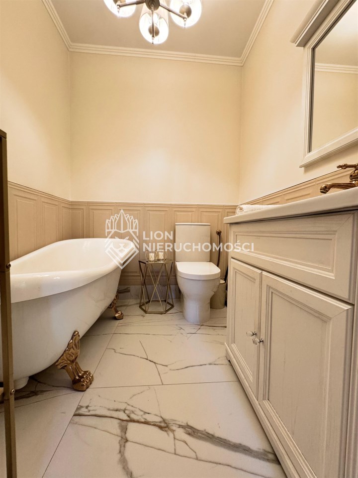Dwie łazienki, z czego jedna z nich dostępna jest bezpośrednio z jednej z sypialni - obok znajduje się również dodatkowe pomieszczenie (np. garderoba lub pokój kąpielowy)
