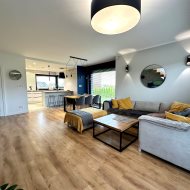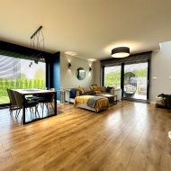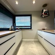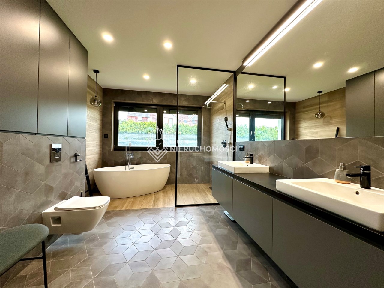 Dom wykończony w podwyższonym standardzie wykończenia. Indywidualne zabudowy na wymiar, baterie podtynkowe, markowej jakości sprzęty oraz armatura. Rozprowadzona instalacja centralnego odkurzacza.