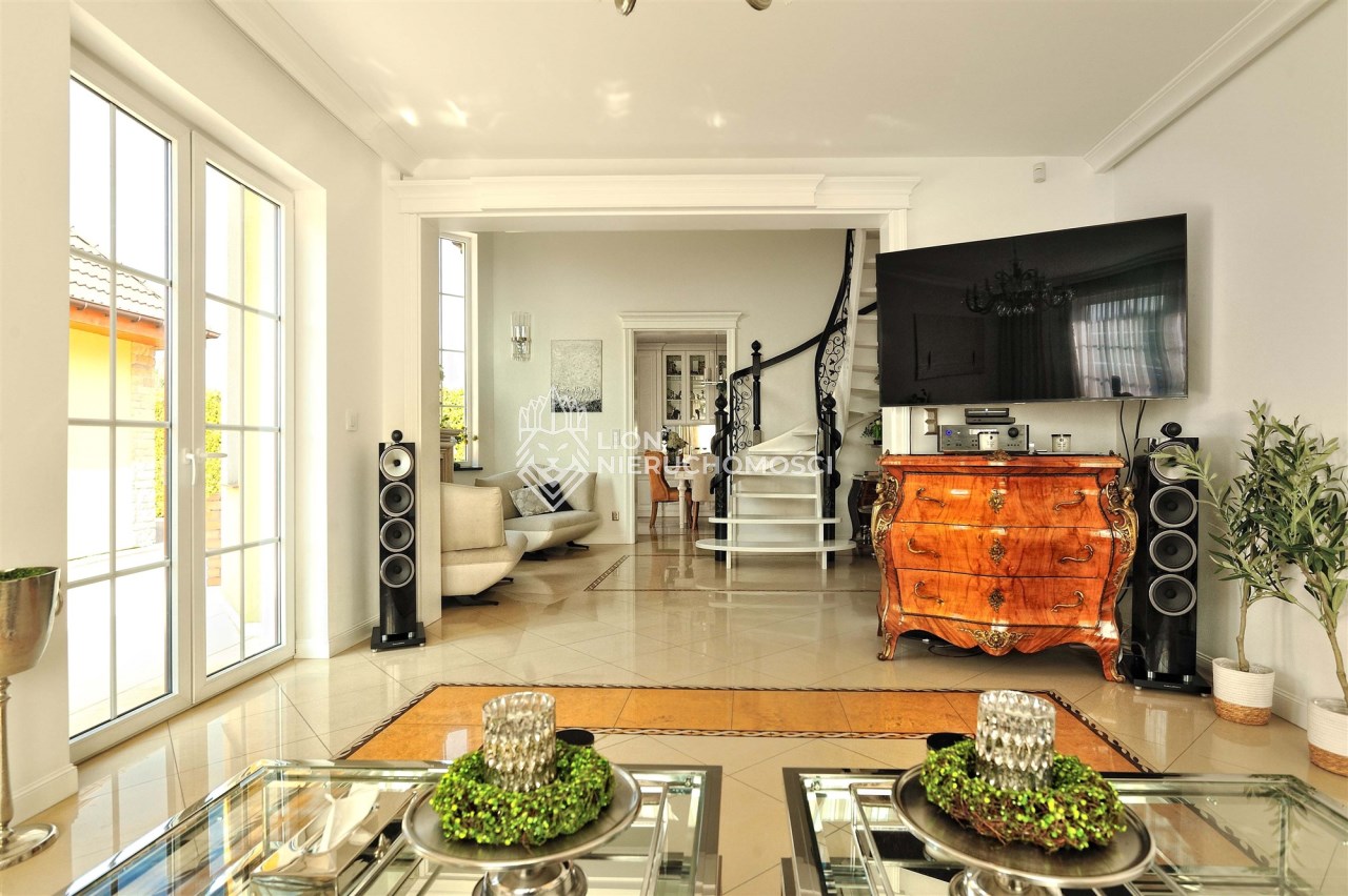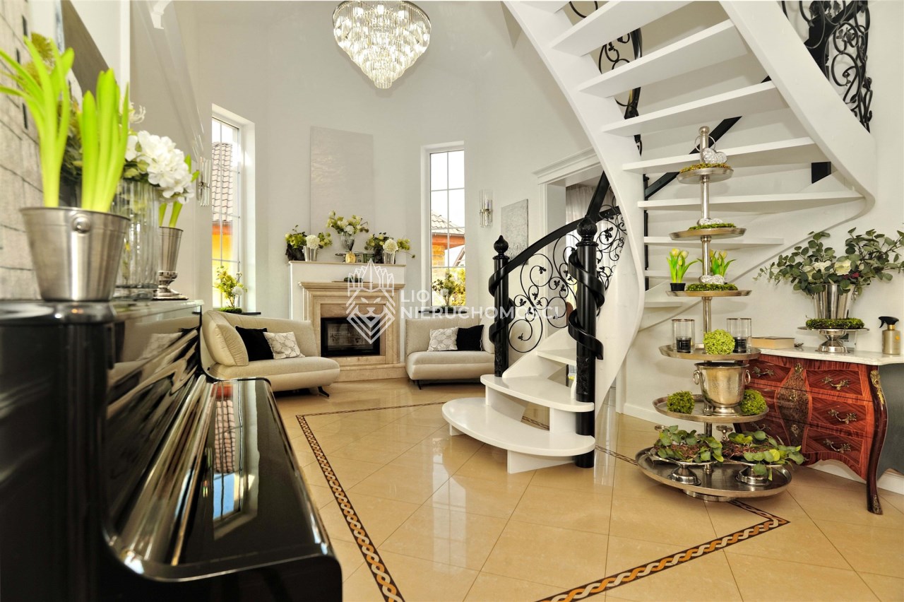 - reprezentacyjny hol – wysokość 7 metrów, marmurowy kominek i eleganckie, kręcone schody