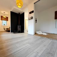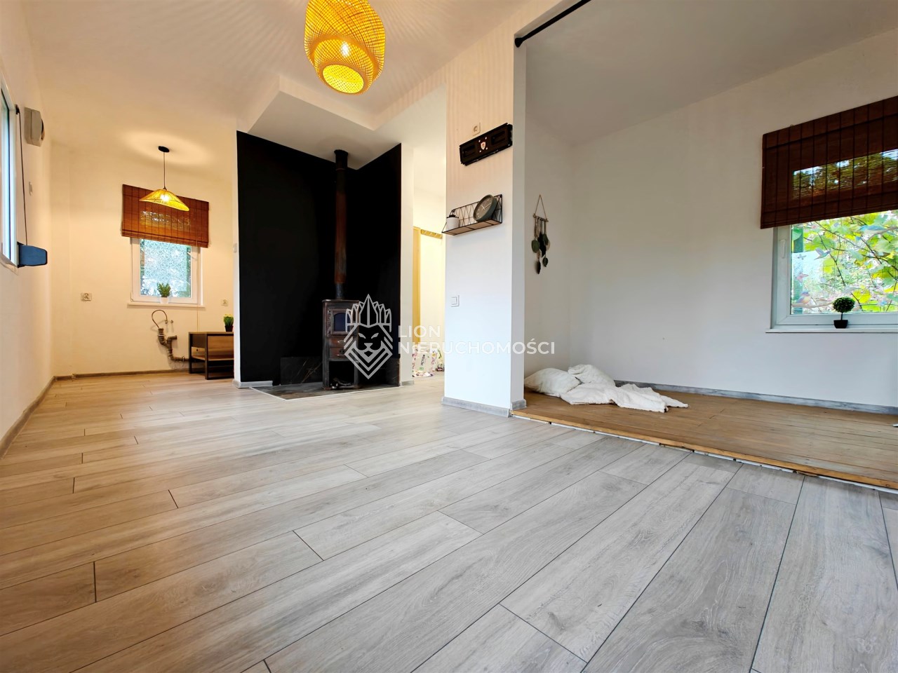Domek został odświeżony i ocieplony styropianem, częściowo wymieniono okna, instalację elektryczną oraz zamontowano rolety. Istnieje możliwość zabudowy drugiego poziomu w lekkiej konstrukcji. Na działce znajduje się również altana, domek narzędziowy, szklarnia oraz kompostownik.