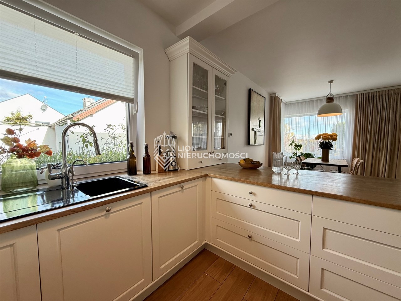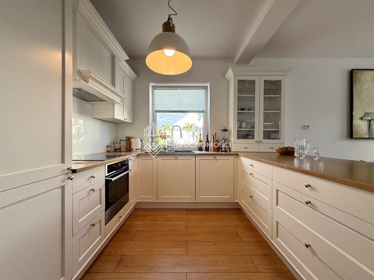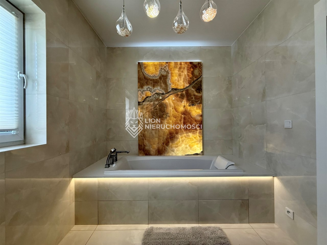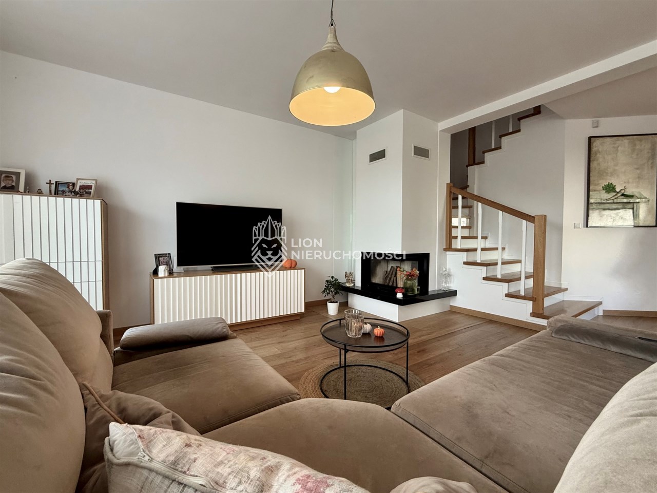 Wnętrze domu obejmuje 5 pokoi, w tym 4 sypialnie z czego jedna została zagospodarowana na garderobę, co zapewnia wygodę nawet dla dużej rodziny. Budynek z garażem w bryle i bezpośrednim wejściem do części mieszkalnej.