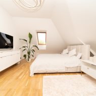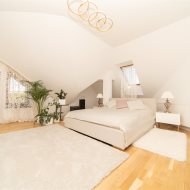 Poddasze oferuje trzy pokoje o powierzchniach 22 m², 18 m² i 16 m², a także salon kąpielowy o powierzchni 18 m², połączony bezpośrednio z garderobą. Dodatkowym atutem jest strych, który można zaadaptować według własnych potrzeb.