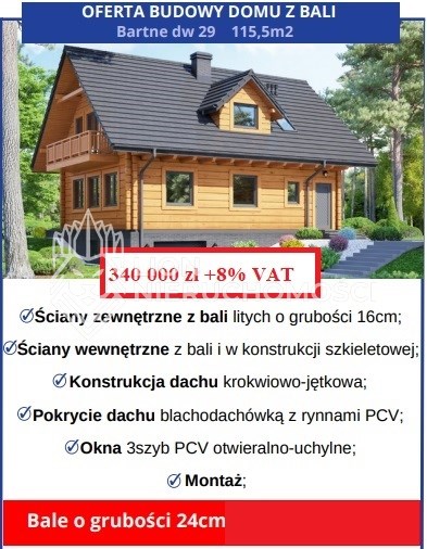 Do zakupu dom z bali drewnianych do wybudowania na własnej działce lub działce do nabycia.