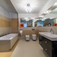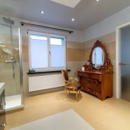 - Sypialnia typu master bedroom (z klimatyzacją) z prywatnym salonem kąpielowym, dużą garderobą i wyjściem na taras,