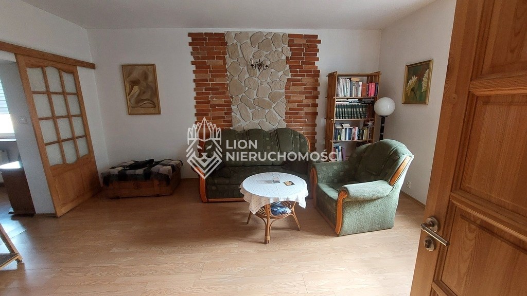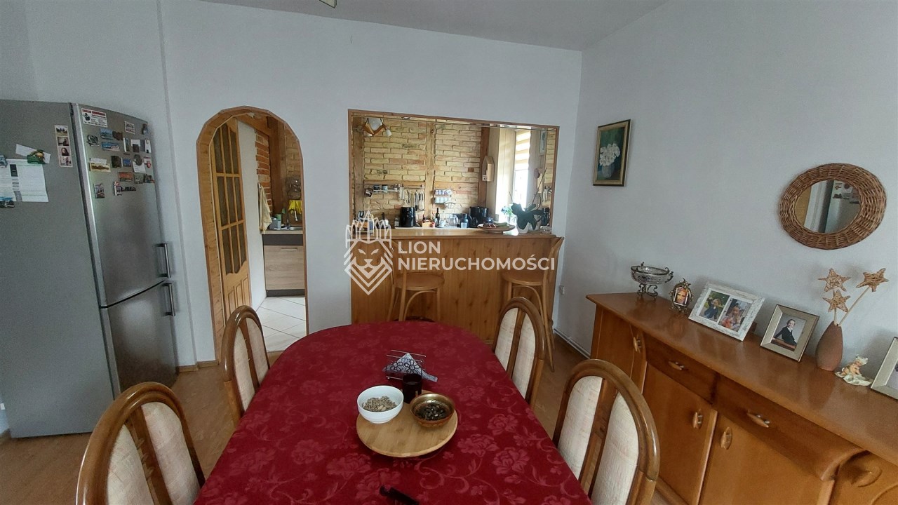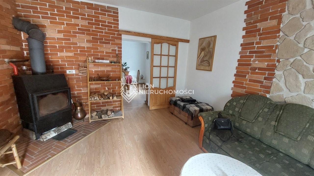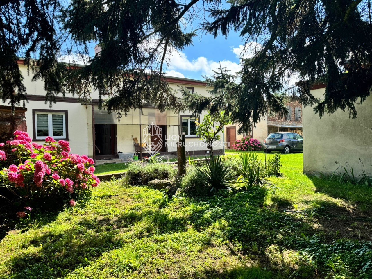 Pęzino miejscowość położona tylko 10 min od Stargardu, 7 km od Marianowa, 40 min od Szczecina. Dom wolnostojący, piękna duża działka, całość tworzyła gospodarstwo rolne. Niezmiernie rzadko można spotkać taką nieruchomość, gdzie można odpoczywać w otoczeniu przyrody, słuchać ptaków i szumu rzeczki a jednocześnie wyjść " za próg" i mieć sklep, przystanek, pocztę szkołę itd. Dom pierwotnie jednorodzinny na potrzeby mieszkańców został przerobiony tak , aby służył dwóm rodzinom. I tak: są dwa niezależne wejścia. Jedna część po remoncie, druga nie. Część wyremontowana to : przedpokój, salon, jadalnia i otwarta kuchnia. Na tym poziomie jest jeszcze łazienka. Schodami idziemy na poddasze użytkowe gdzie jest pokój, sypialnia, garderoba i przedpokój z zabudową z szaf typu Komandor. W salonie jest kominek z rozprowadzonym płaszczem wodnym. Parter to powierzchnia ok 50 m2, poddasze podobnie. Drugą cześć domu tworzy " lustrzane odbicie" . Ta część nie została wyremontowana, co pozwala nowym właścicielom zrobić je wg własnych pomysłów. Na dachu jest blacha, elewacja dobrze utrzymana, okna PCV, tylko w części do remontu zostały dwa na poddaszu, które jeszcze nie zostały wymienione. Tutaj mamy ogrzewanie piecem na węgiel. Na posesji jest garaż jednostanowiskowy, oraz 2 budynki gospodarcze. Dużą zaletą jest jeden z budynków gospodarczych, jest on wolnostojący, składa się z kilku pomieszczeń i jest to doskonała rzecz, do prowadzenia np. działalności rzemieślniczej. Obok stoi szklarnia i jeszcze jeden budynek służący gospodarstwu. Liczne nasadzenia, drzewa ozdobne oddzielają mieszkańców od ulicy, drzewa owocowe pozwolą zapełnić spiżarnię, winorośla, maliny, jeżyny itd. Działka ma kształt nieregularny w jednej części zbliża się do rzeczki. Na chwilę obecną teren pomiędzy działką a rzeką należy do gminy. Można go wydzierżawić, co da możliwość skorzystania z tego sąsiedztwa. Obok jest średniowieczny zamek ( rozbudowany w XIX wieku) , na jego dziedzińcu organizowane są co roku imprezy " rycerskie". Otoczenie bardzo ładne, niskie koszty utrzymania. Można przywrócić pierwotny kształt pomieszczeń, czyli połączyć te dwie części wstawiając tylko drzwi.
