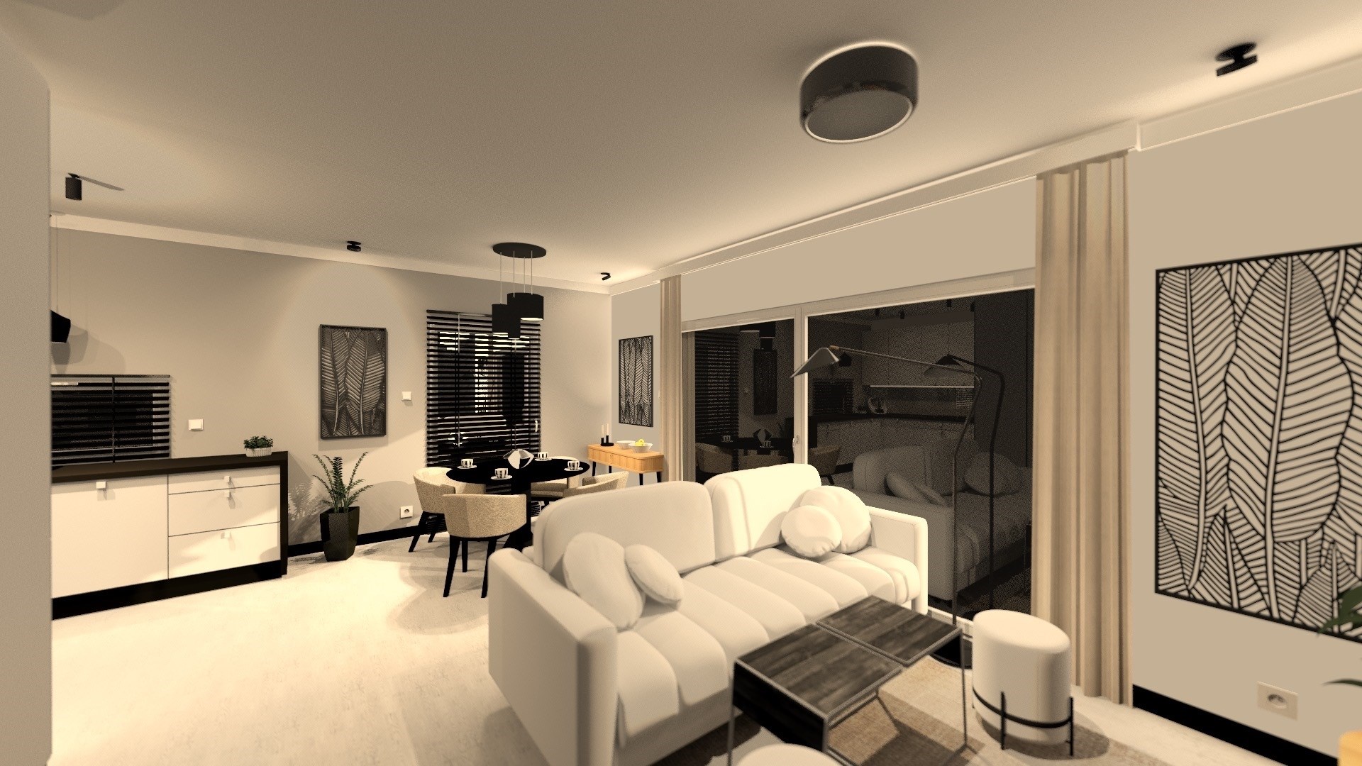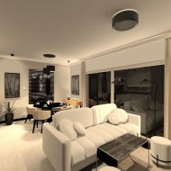Parter: salon połączony z aneksem kuchennym, wyjście na duży taras, wc , holu przejście do