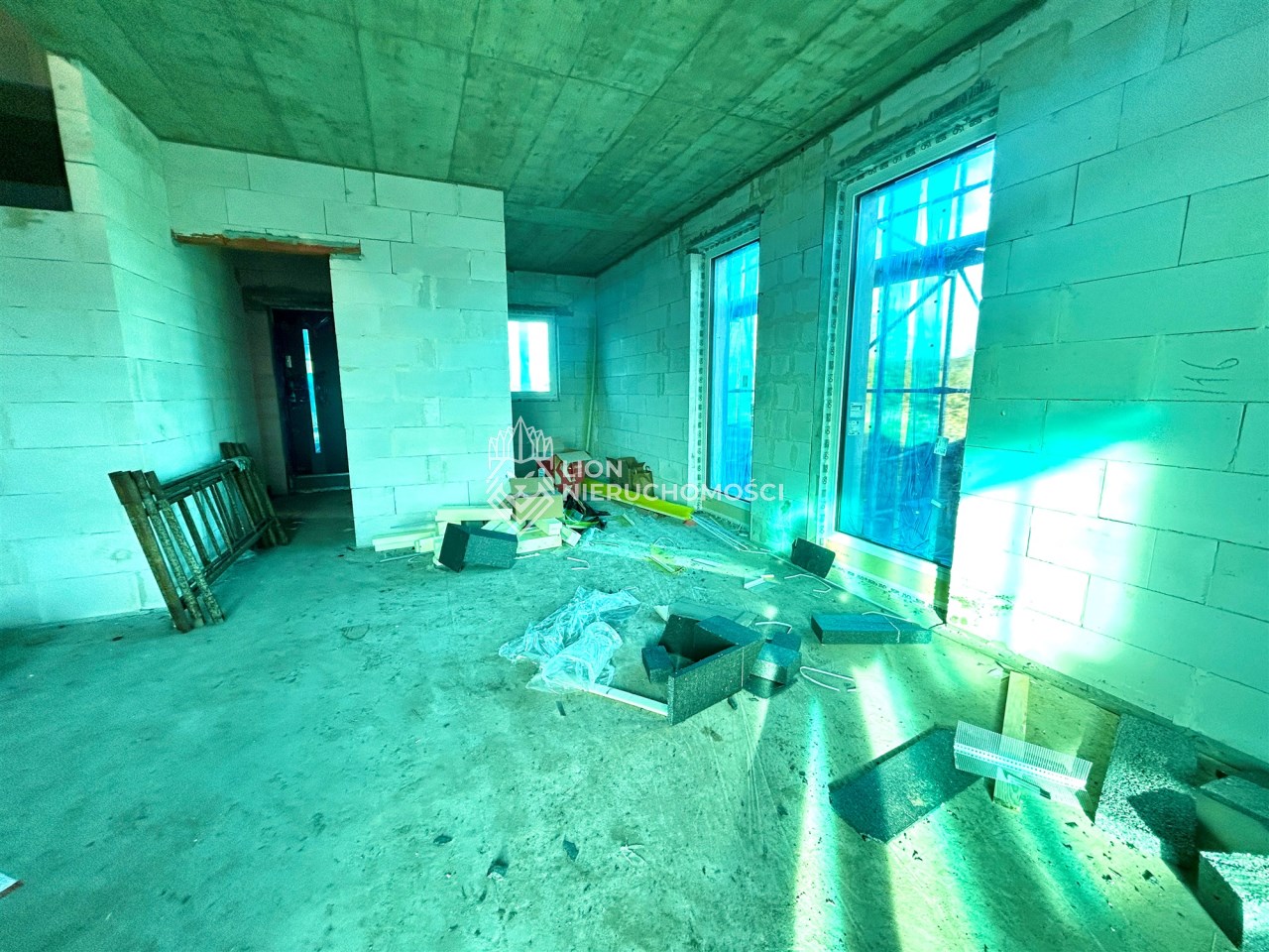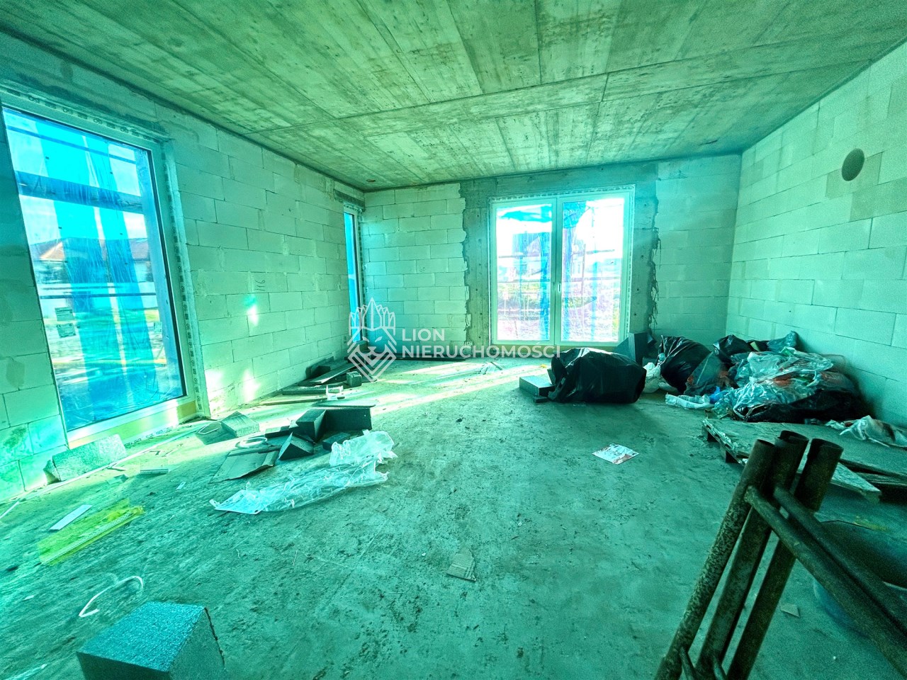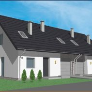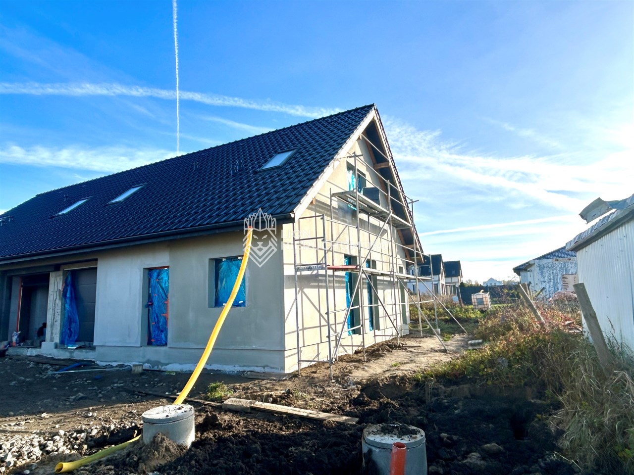Dom jednorodzinny dwulokalowy w zabudowie bliźniaczej, na na działce 425 m2, o powierzchni użytkowej 130m2 powierzchni użytkowej. W projekcie podwójna ściana z dylatacją między sąsiadami co jest wymagane w zabudowie bliźniaczej a czego nikt z deweloperów nie stosuje w przypadku budynków dwulokalowych. Dostępne media: prąd, woda z wodociągu miejskiego, pompa ciepła, szambo. Budynki w stanie deweloperskim z elewacją i mediami doprowadzonymi do budynku. Budynki w tracie wykańczania, do wydania w I kwartale 2026 roku