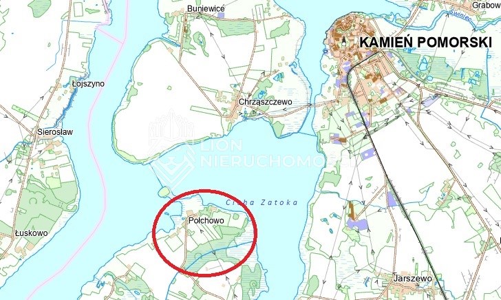 Działka budowlana o powierzchni 9401m2 przy wodzie w Połchowie gm. Kamień Pomorski.