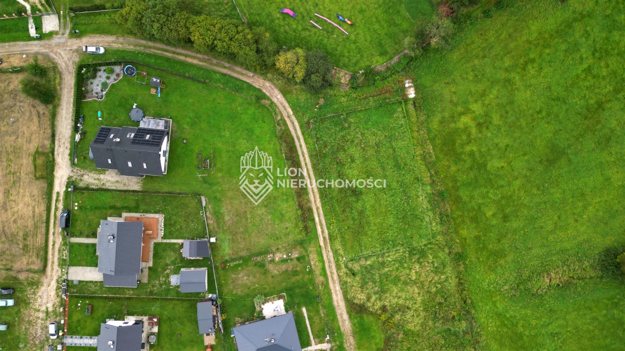 Działka o powierzchni 1029m2 położona jest w pieknym miejscu, przy drodze oddalonej od głównej ulicy. Działka graniczy z terenem ochrony Natura 2000, dzięki czemu mamy pewność, że nic nie zasłoni widoku na łąki. W najbliższym otoczeniu kompleks innych działek, tworzących mini osiedle domków jednorodzinnych.