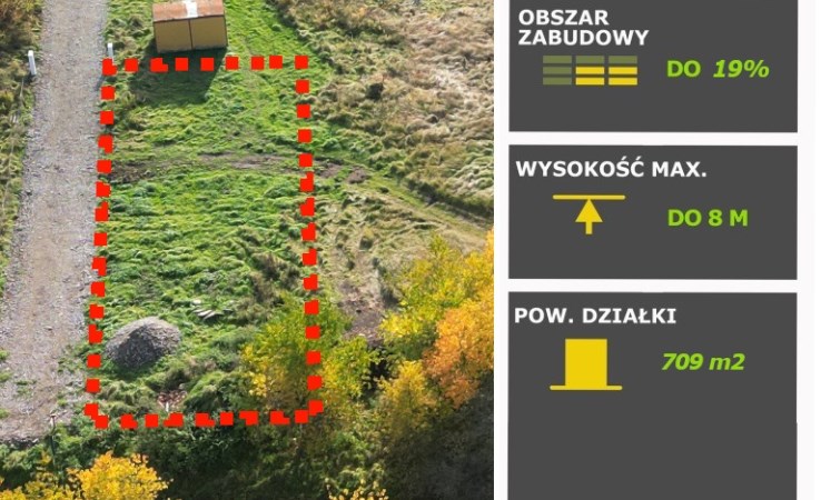 W ofercie fajna działka o powierzchni 873m2 z wydanymi warunkami zabudowy obok dysponujemy sąsiadującą ze działką z aktualnymi warunkami zabudowy, powierzchnia zabudowy 20,5% , wysokość do 9m, szerokość frontowa 10,8 m, kont nachylenia dachu 40-45%, uzbrojenie prąd, woda, zamknięty zbiornik na nieczystości.