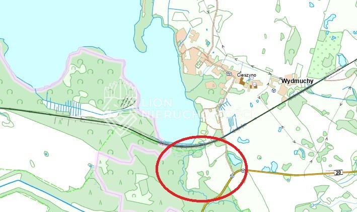 Dojazd drogą asfaltową (droga krajowa 20 i droga lokalna do Cieszyno), uzbrojenia brak.