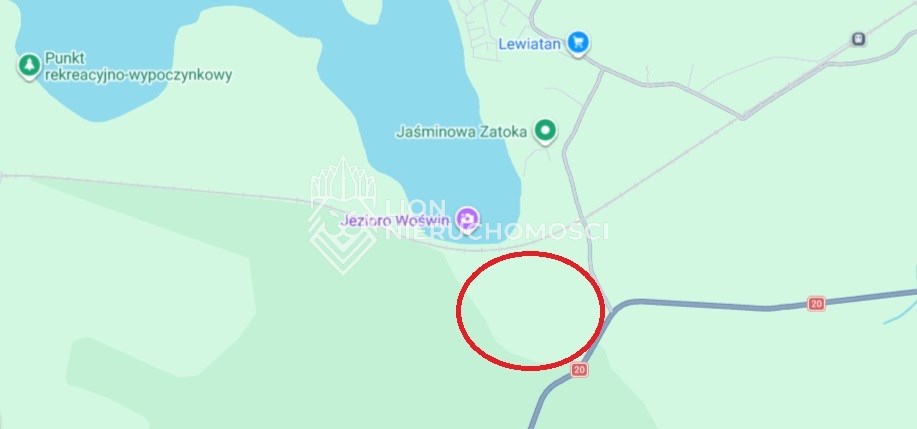 W odległości około 500m jest plaża nad jeziorem Woświn oraz zabudowania rekreacyjne a zabudowania mieszkalne wsi Cieszyno około 1km.