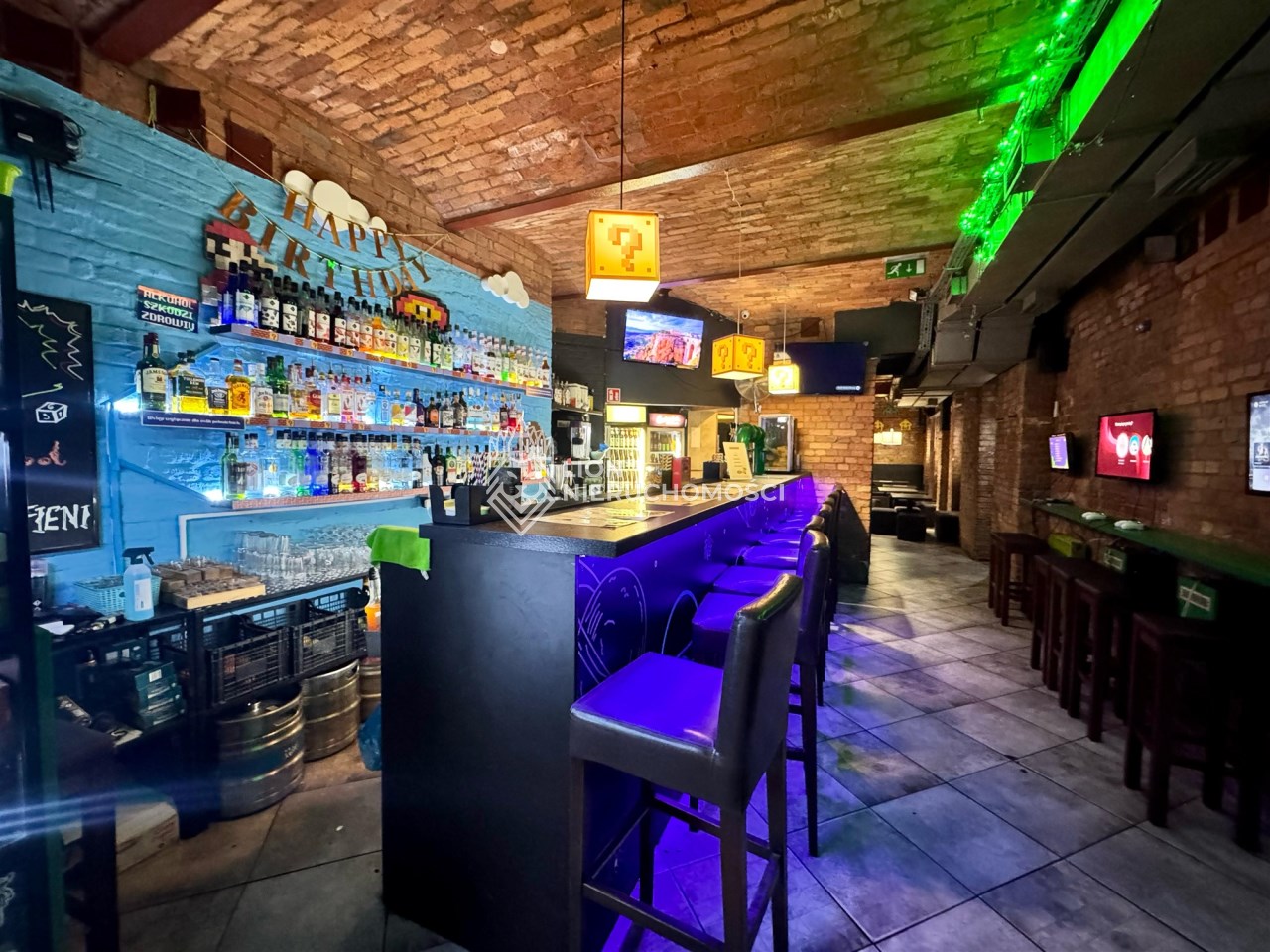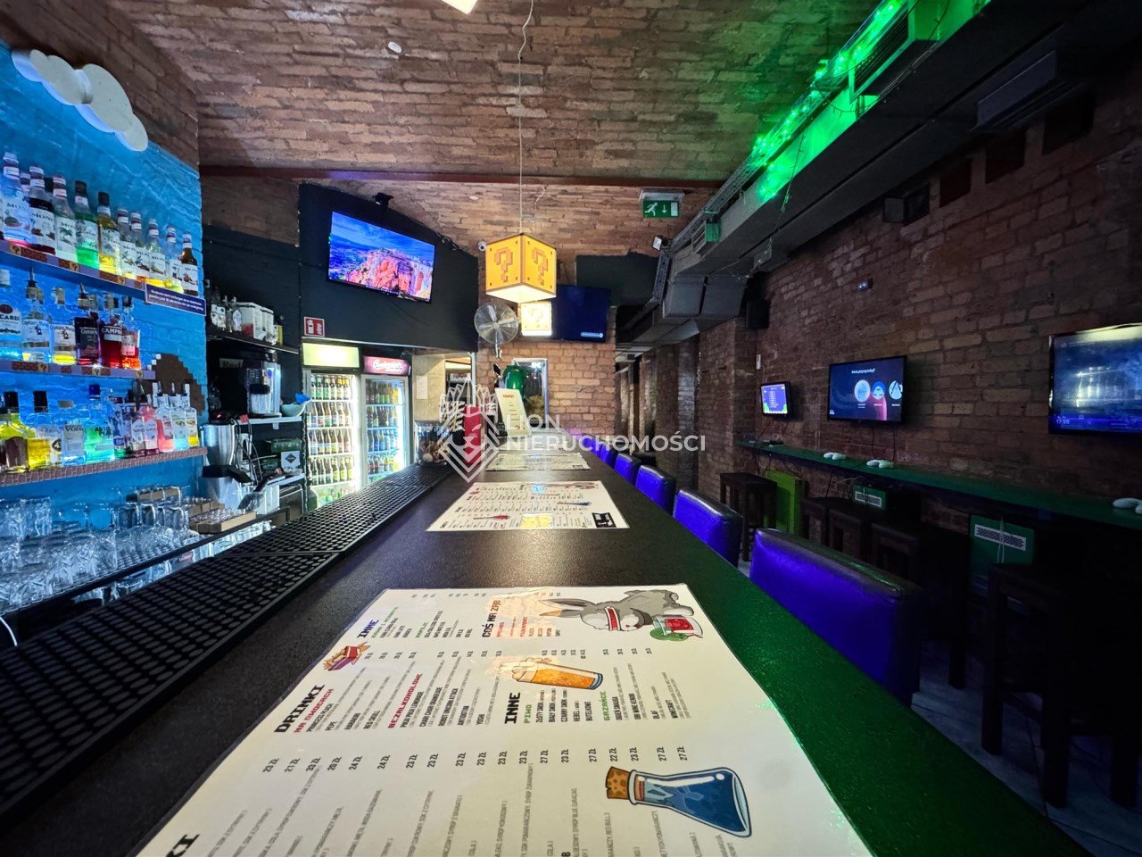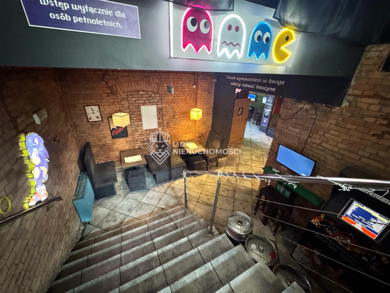Lokal składa się z dwóch przestronnych sal połączonych szerokim korytarzem, w którym znajduje się funkcjonalny bar oraz zaplecze barowe.