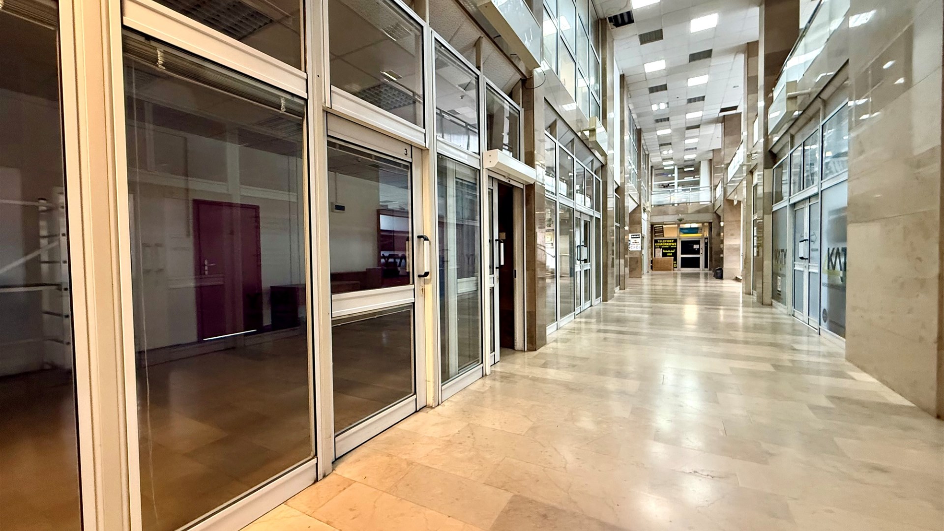 - Wnętrze to kilkupoziomowa galeria handlowa z centralnym hallem, korytarzami i lokalami różnej wielkości.