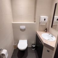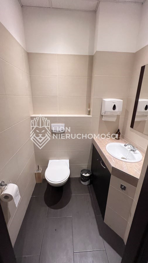 Wnętrze wykończone w wysokim standardzie, wyposażone m.in. w klimatyzację, system alarmowy oraz monitoring (zewnętrzny i wewnętrzny). Do lokalu prowadzą eleganckie granitowe schody. Dodatkowym atutem są dwie toalety oraz liczne punkty wodno-kanalizacyjne w większości pomieszczeń – idealne rozwiązanie dla działalności gabinetowej.