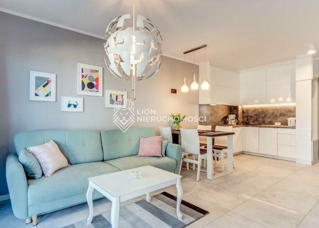 Na sprzedaż 2-pokojowy apartament, na którego metraż składa się łazienka, sypialnia oraz salon z aneksem kuchennym.