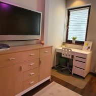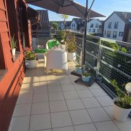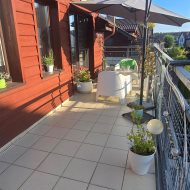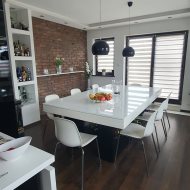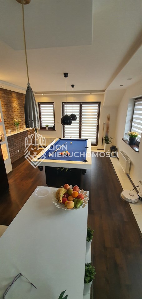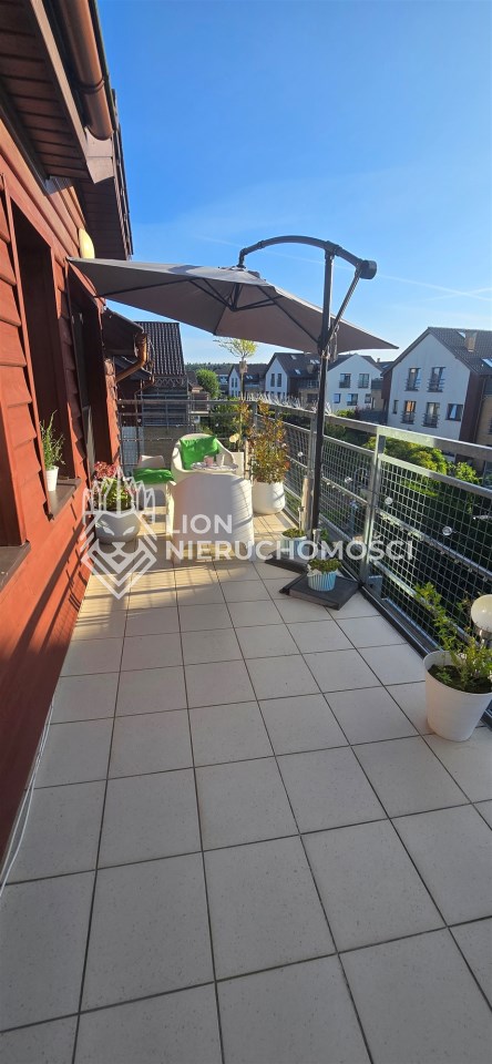 Mieszkanie 3 pok położone na II piętrze w budynku z cegły przy ul Kalinowej. Mieszkanie zaprojektowane wg własnego projektu, robi bardzo dobre wrażenie. Salon z jadalnią i kuchnią tworzy jedną całość. Kształt prostokątny, w środkowej części jest kuchnia z wyspą, po prawej stronie jest salon z wyjściem na taras. Po lewej stronie od kuchni jest jadalnia. Właściciele wykorzystali stół bilardowy przykrywając go blatem. Ten mebel ma "podwójną funkcję". Na co dzień jadalnianą, a gdy mieszkańcy zechcą zdejmują blat i mają stół bilardowy. Z jadalni jest wyjście na kolejny taras. Duży przedpokój ma prawie 10 m2. Jeden z pokoi ma 10,10 m2, obok jest łazienka z wanną, WC. Kolejny pokój ma 9,4 m2 ( sypialnia) z własną łazienką. Nad mieszkaniem jest powierzchnia poddasza ok 50 m2 ( liczona po podłodze). Obecnie śluzy jako magazynek, lecz może być w łatwy sposób dołączona do mieszkania i tym samym zyskuje eis dodatkowy pokój. Czynsz liczony dla 3 osób wynosi 500 zł . Ogrzewanie miejskie z SEC. W mieszkaniu poza siedziskami i kanapą w salonie może pozostać w cenie większość mebli. Okolica urokliwa, z każdej strony tereny zielone . Sklepy, przychodnia, szkoła. Do przystanku autobusowego jest parę minut. Do mieszkania przynależy piwnica ( 5,6 m2). Jest możliwość zakupu miejsca postojowego w garażu podziemnym za 100 000 zł . Termin wydania do uzgodnienia. Oferta na wyłączność. Zapraszam