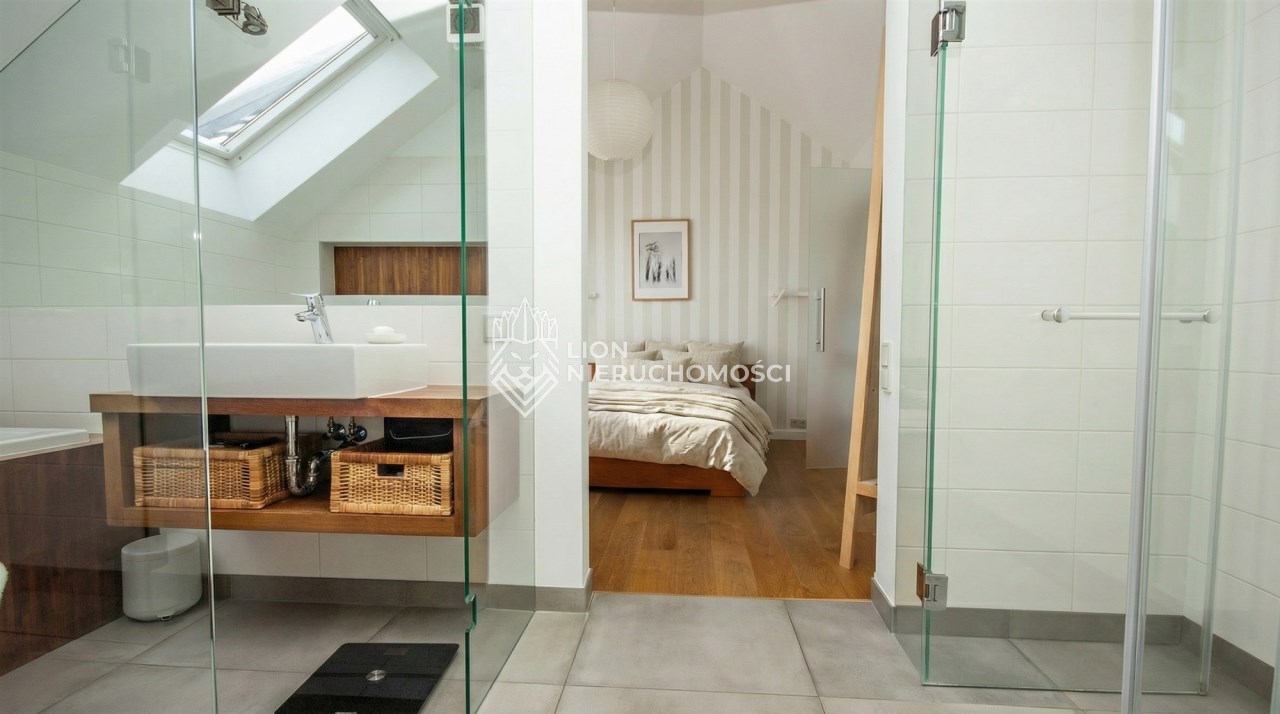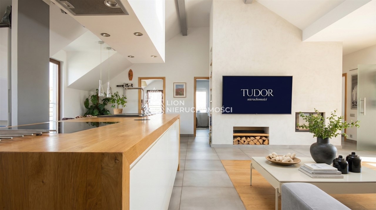 Lokal wykończony w bardzo wysokim standardzie. Wysokie sufity sprawiają wrażenie dużej przestronności a kominek w centralnej części dodaje uroku i ciepła domowego. W mieszkaniu wydzielona strefa Master - z własną łazienką i garderobą. Dodatkowo nad sypialnią zaprojektowaną schowek. W garażu wykonano pawlacz na przechowywanie sprzętu sportowego.