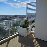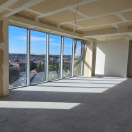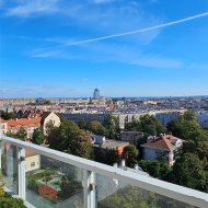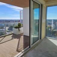 Z przestronnego tarasu rozpościera się niezwykły widok na panoramę miasta. Wnętrze apartamentu jest funkcjonalne, komfortowe i jasne, a dzięki panoramicznym przeszkleniom pomieszczenia są doskonale doświetlone.