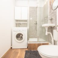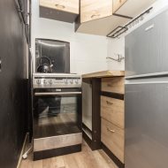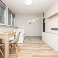 - jednego pokoju z duża szafą, łóżkiem i miejscem do jedzenia