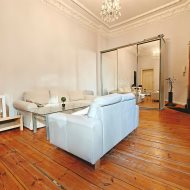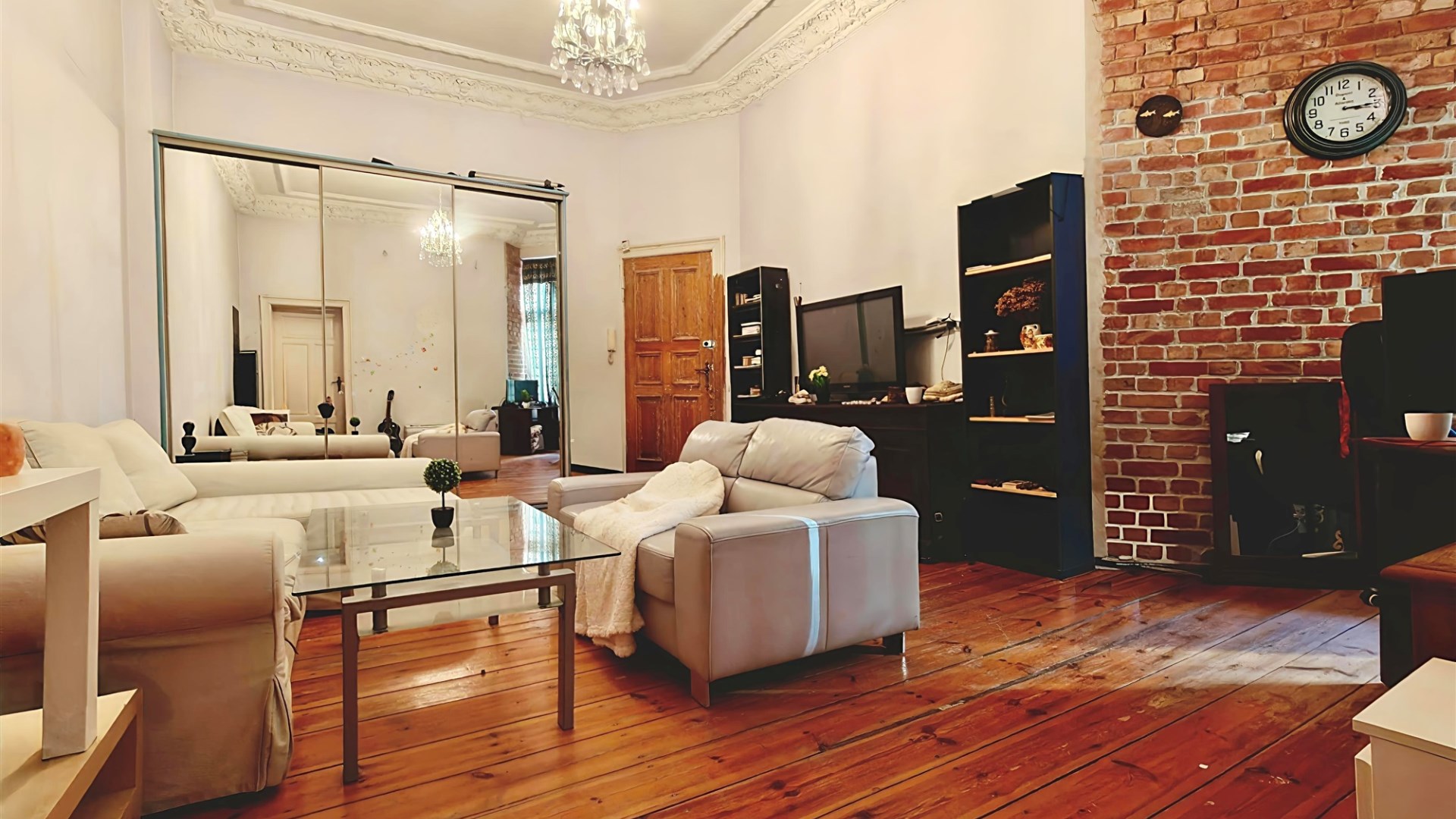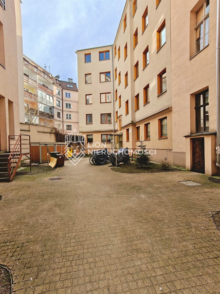 Nieruchomość usytuowana jest na pierwszym piętrze w 4-piętrowej, klasycznej kamienicy z cegły. Posiada nieszablonowy układ - wejście do mieszkania odbywa się przez korytarz współdzielony z sąsiadką. Zaraz po wejściu trafiamy do nastrojowego, wysokiego salonu, z którego przechodzimy do kuchni połączonej z łazienką. Idąc dalej, docieramy do drugiego słonecznego pokoju. Do mieszkania przynależy piwnica.