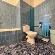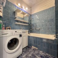 -łazienka wyposażona w wc, umywalkę, wannę oraz pralkę.
