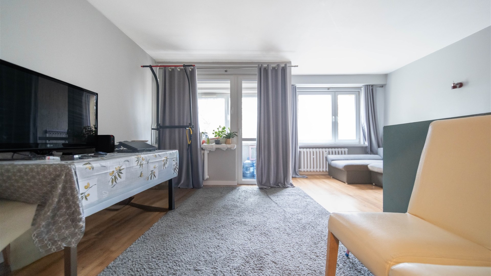 -Salon z wyjściem na zabudowany balkon