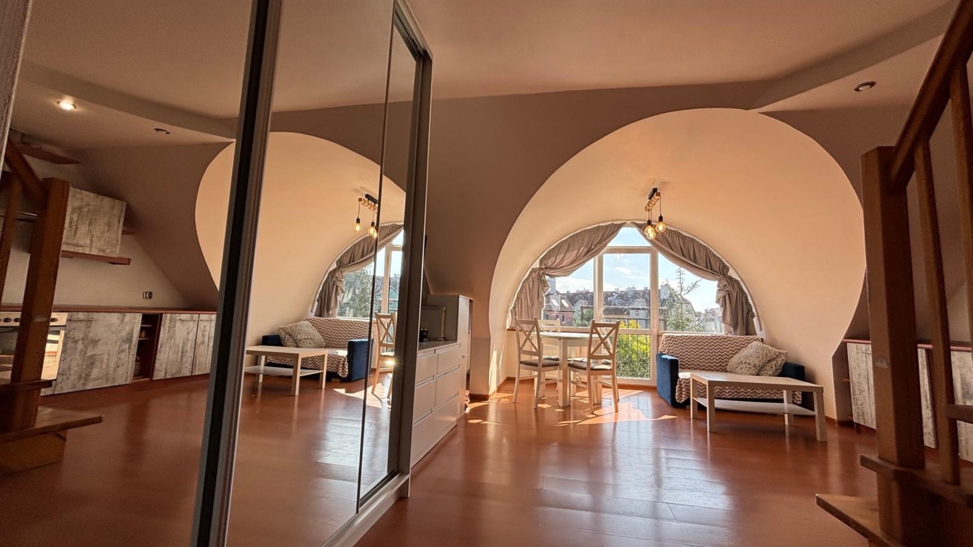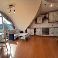 • Poziom I: przestronny salon z aneksem kuchennym, sypialnia, łazienka z WC