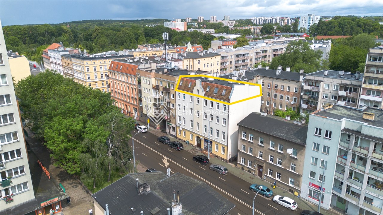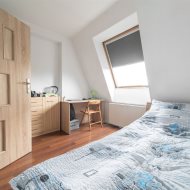 Nieinwazyjne skosy, prawidłowo wykonana adaptacja poddasza w postaci izolacji dachu. W kamienicy wymieniony dach, piony wodno-kanalizacyjne.