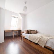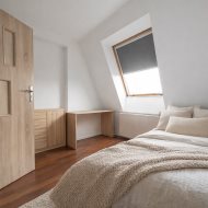Nieinwazyjne skosy, prawidłowo wykonana adaptacja poddasza w postaci izolacji dachu. W kamienicy wymieniony dach, piony wodno-kanalizacyjne.