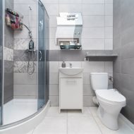 Sensowny rozkład pomieszczeń pozwala prawidłowo wykorzystać oferowaną przestrzeń. W przedpokoju znajduje się duża szafa z lustrem.