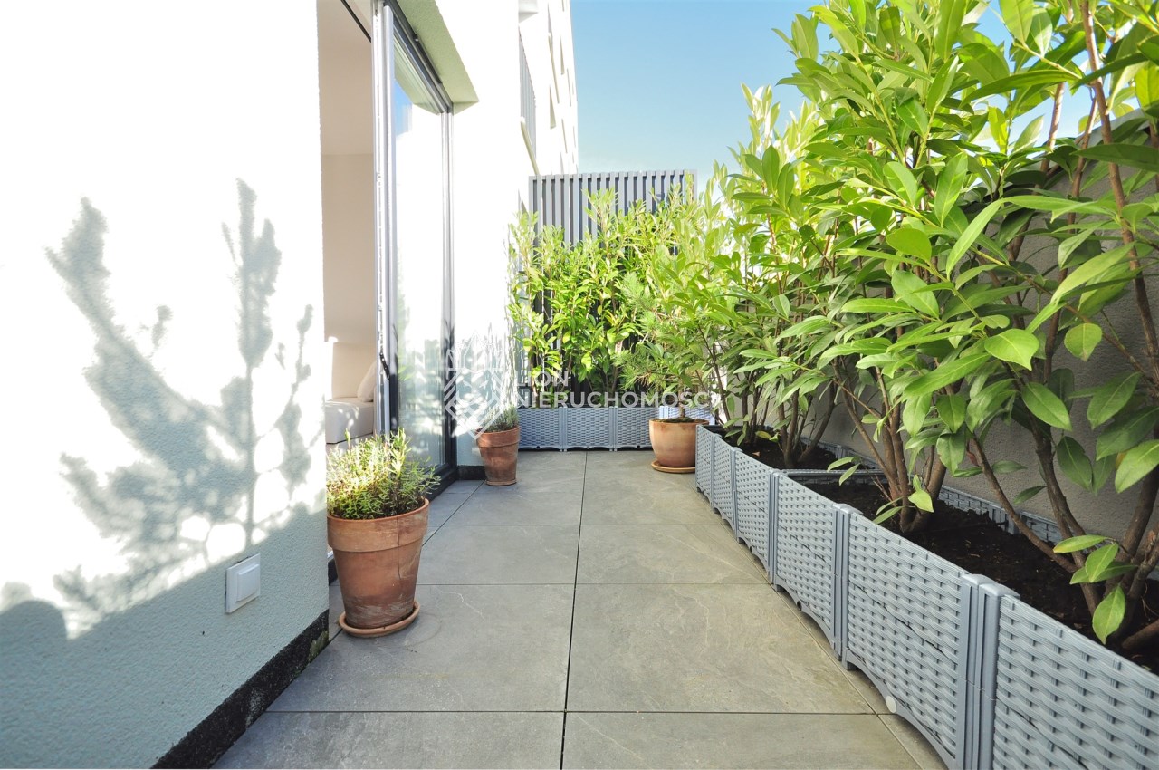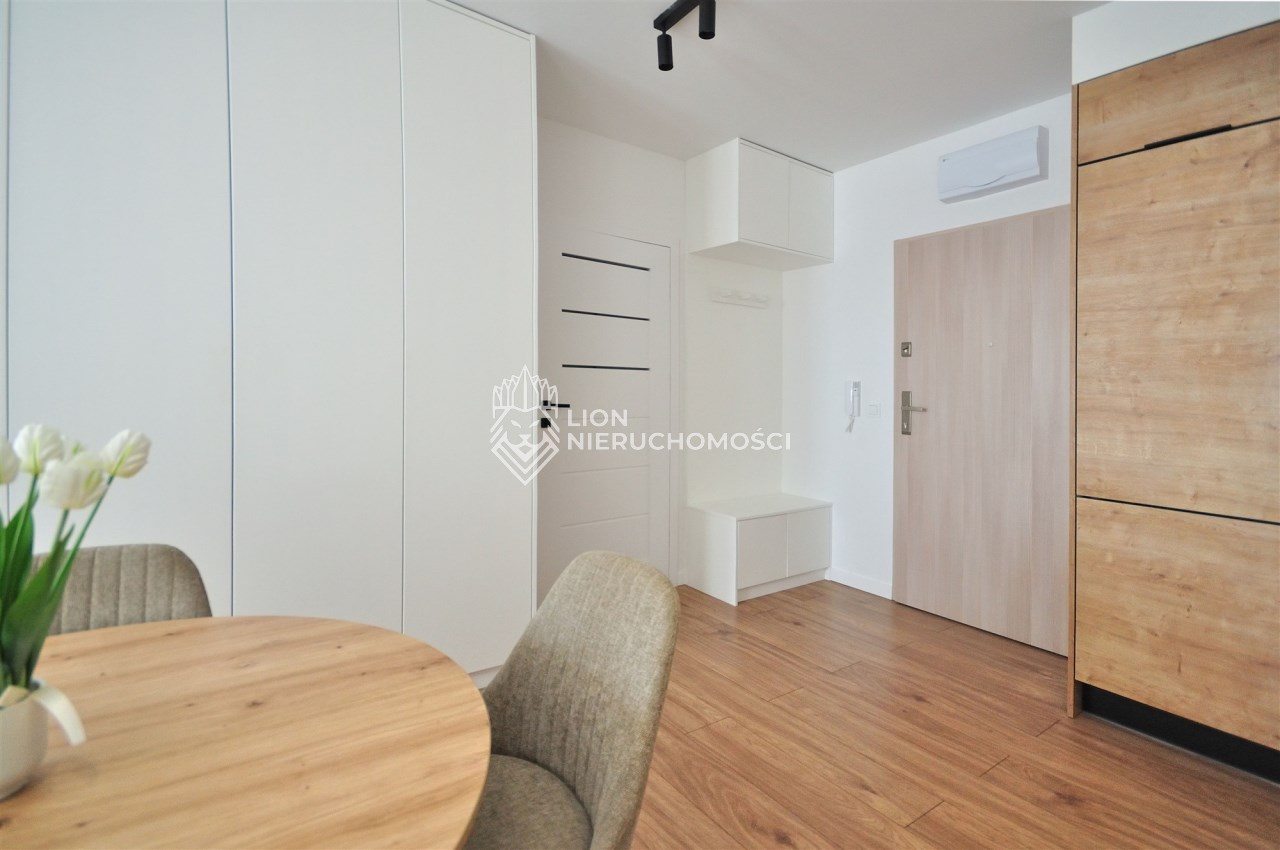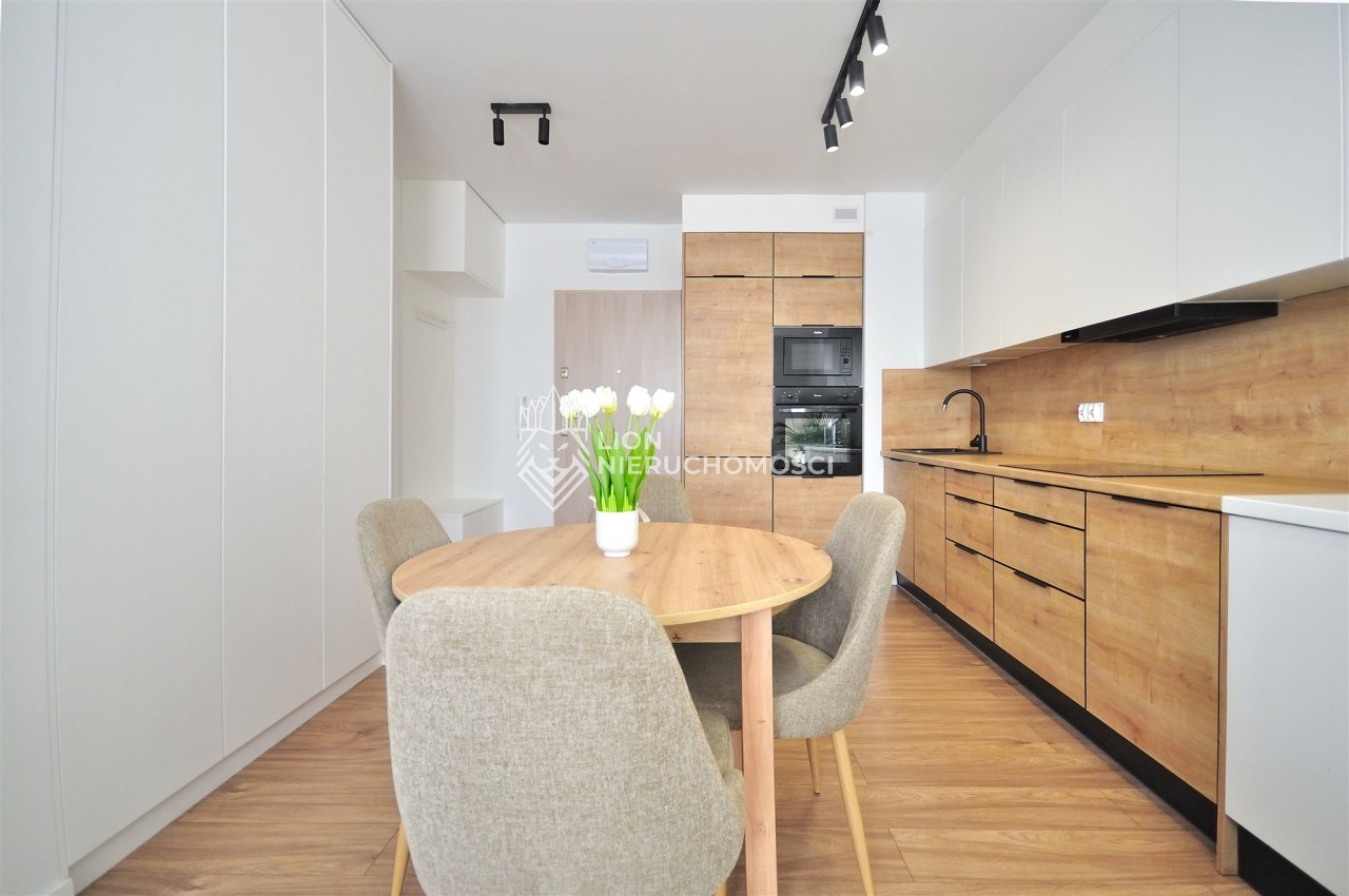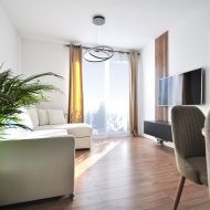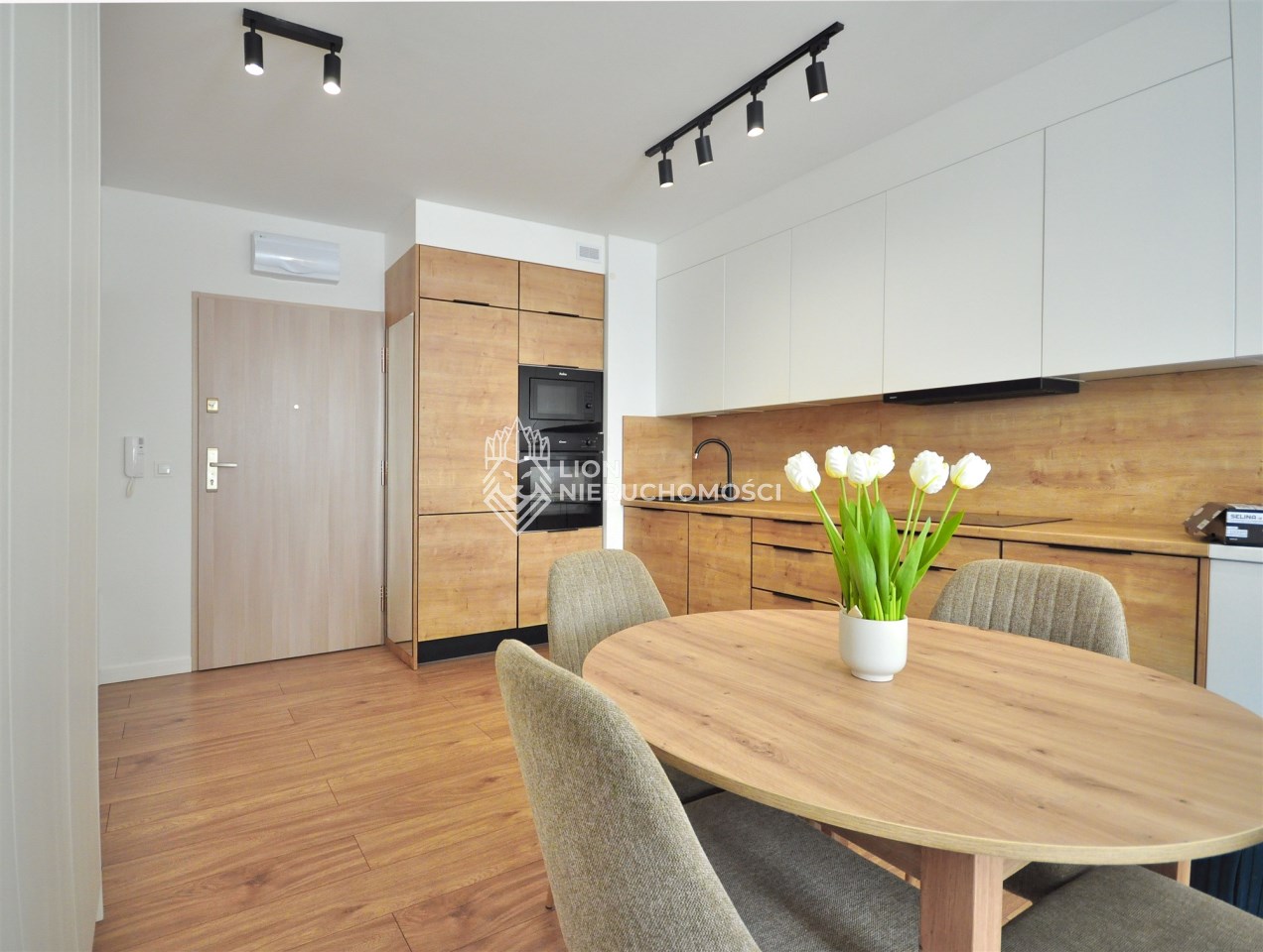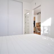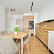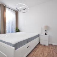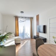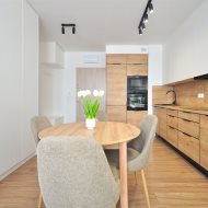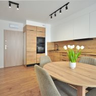 Salon dzienny z aneksem kuchennym, sypialnia osobno. Z obu pokoi wyjście na balkon.