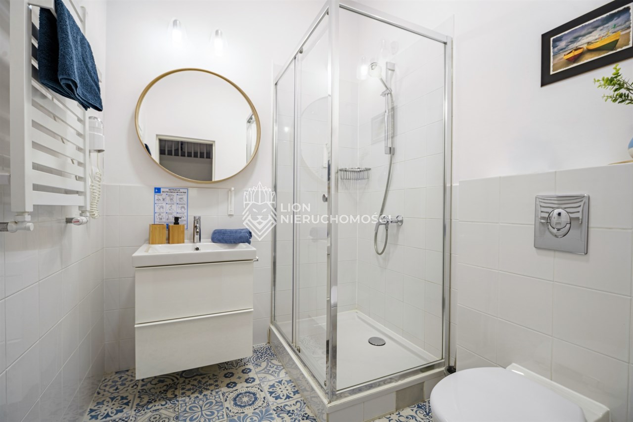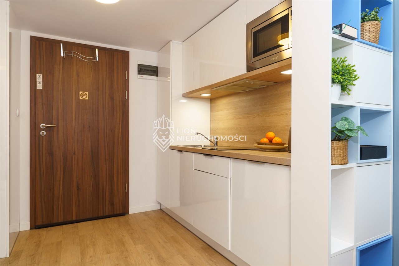 Nieruchomość znajduje się w nowoczesnym budynku z 2017 roku, wyposażonym w windę. Budynek nie jest hotelem – lokale należą do prywatnych właścicieli, tworzących wspólnotę mieszkaniową, co daje pełną swobodę zarządzania najmem. Ze względu na przeznaczenie pod wynajem krórkoterminowy nieruchomość ma status lokalu niemieszkalnego, jednak jest to pełna włsność z udziałem w gruncie.