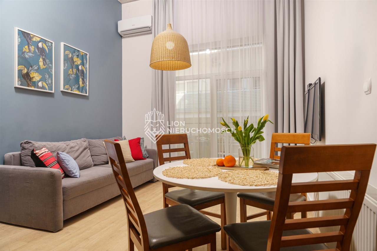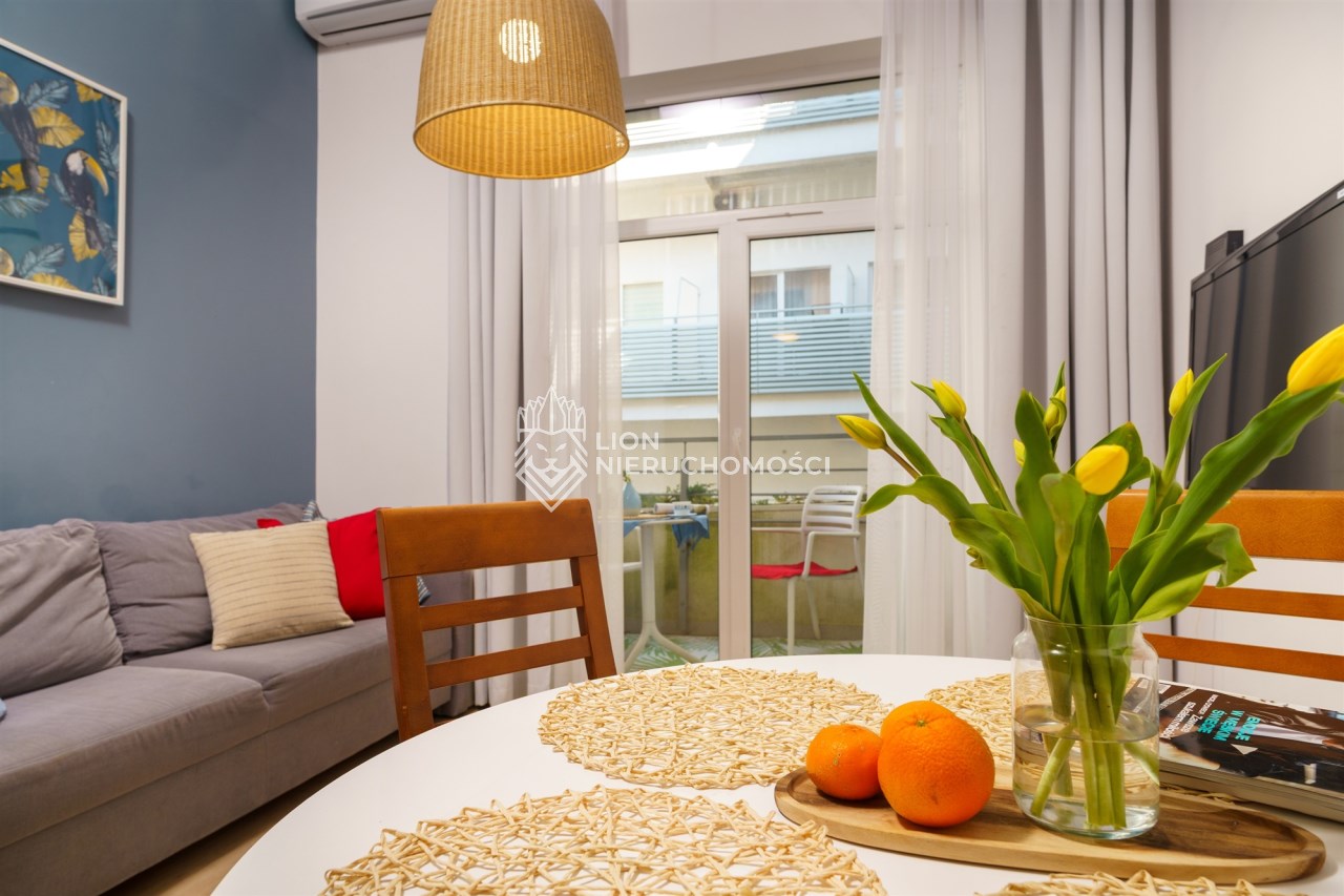 Apartament jest klimatyzowany i sprzedawany z pełnym wyposażeniem – wszystkie meble i sprzęty są w cenie, co oznacza brak dodatkowych kosztów na start. Do lokalu przynależy miejsce postojowe przed budynkiem (bez dodatkowej opłaty).