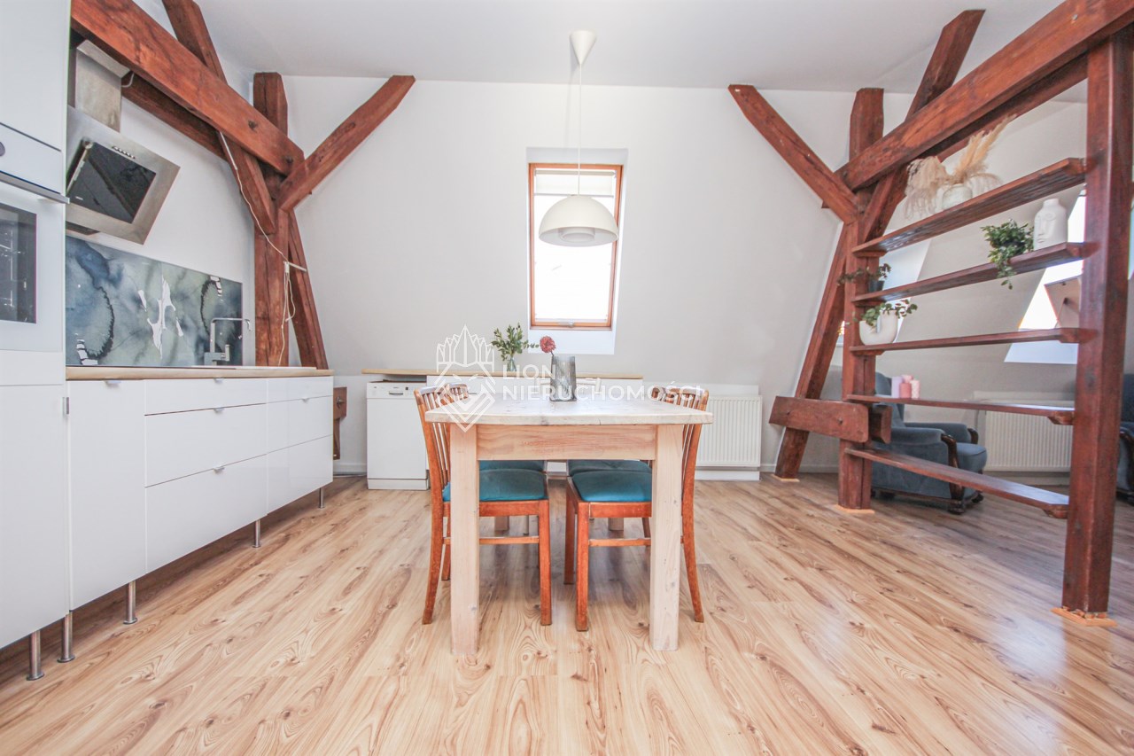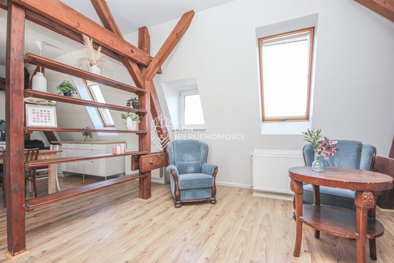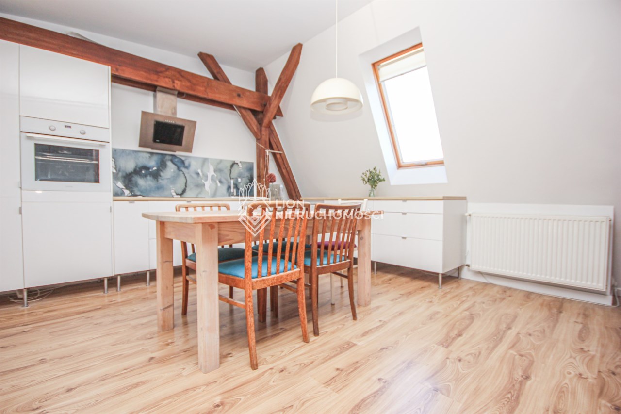 Mieszkanie jest adaptacja poddasza ( przeprowadzona około 2000 roku ), znajduję się na IV piętrze, a w skład jego wchodzą: