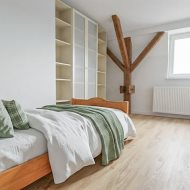 - duża sypialnia z podwójnym łóżkiem i miejscem na szafę