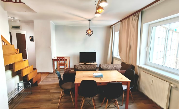 Mieszkanie z balkonem z widokiem na park, znajduje się na 3 piętrze w kamienicy i ma 58 m2, w skład mieszkania wchodzą: 2 pokoje, salon z aneksem kuchennym, łazienka, przedpokój.