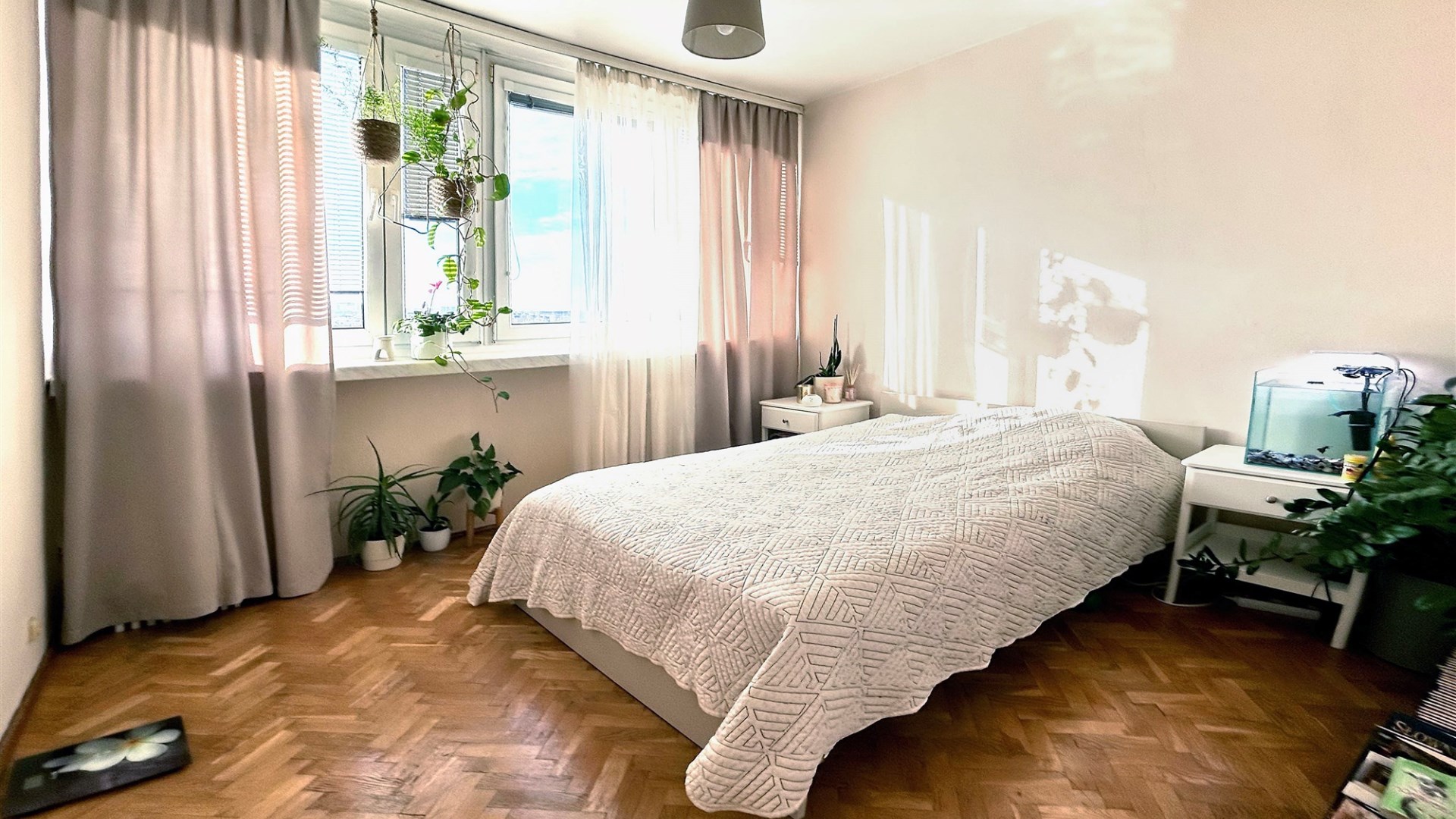 W pokojach na podłodze parkiety, ściany malowane, okna pcv, czynsz z ogrzewaniem i ciepłą wodą 850 zł.