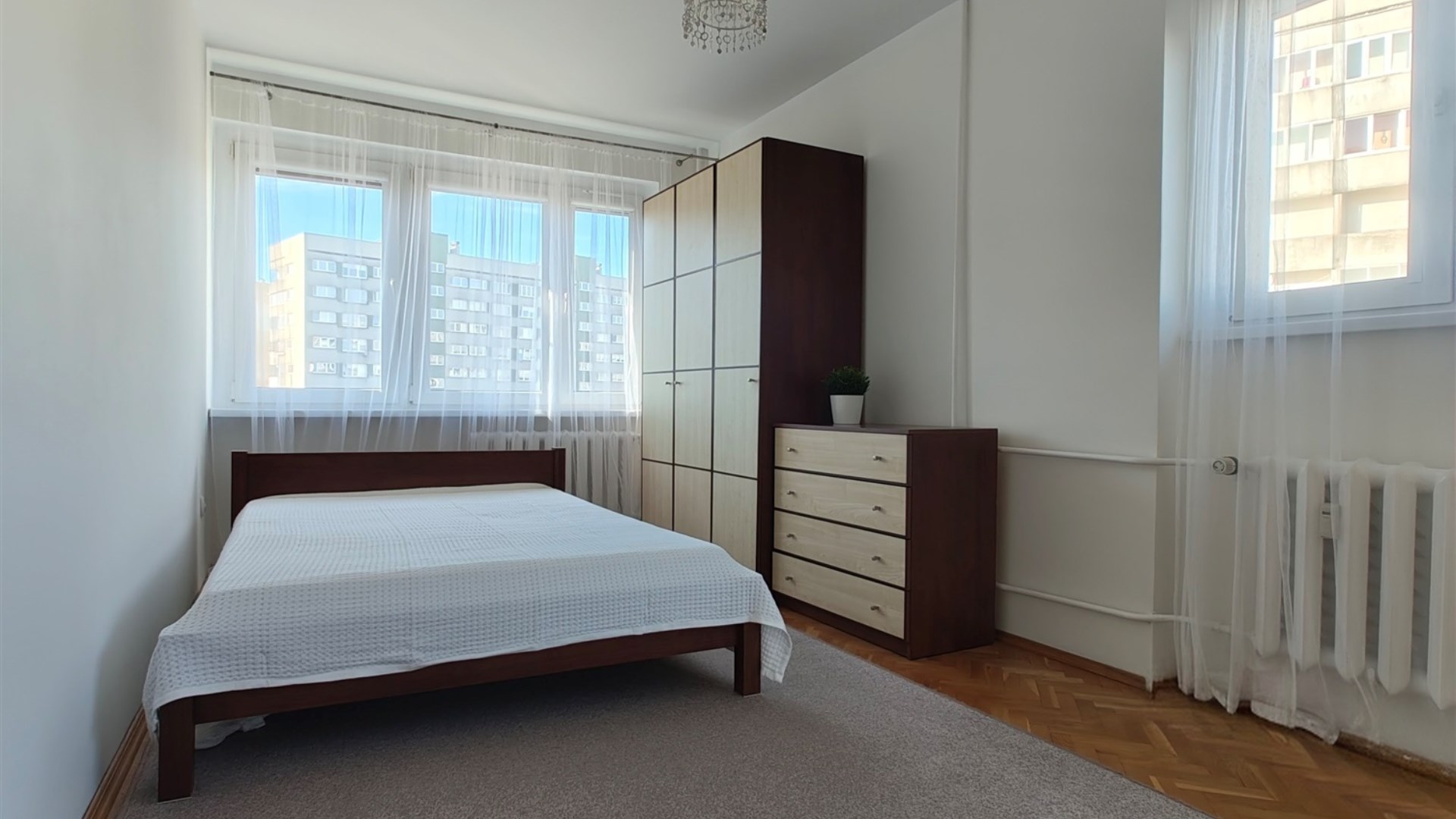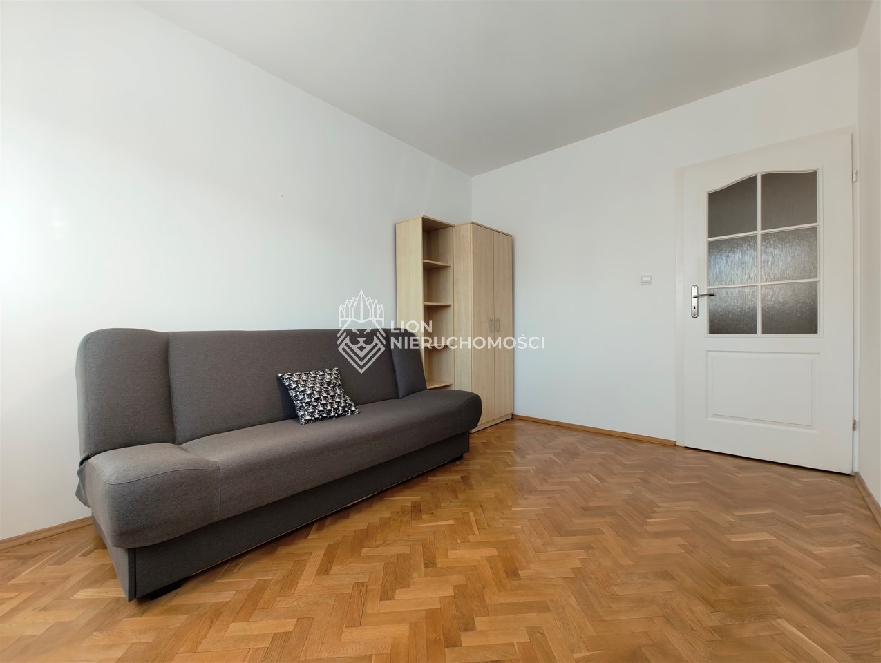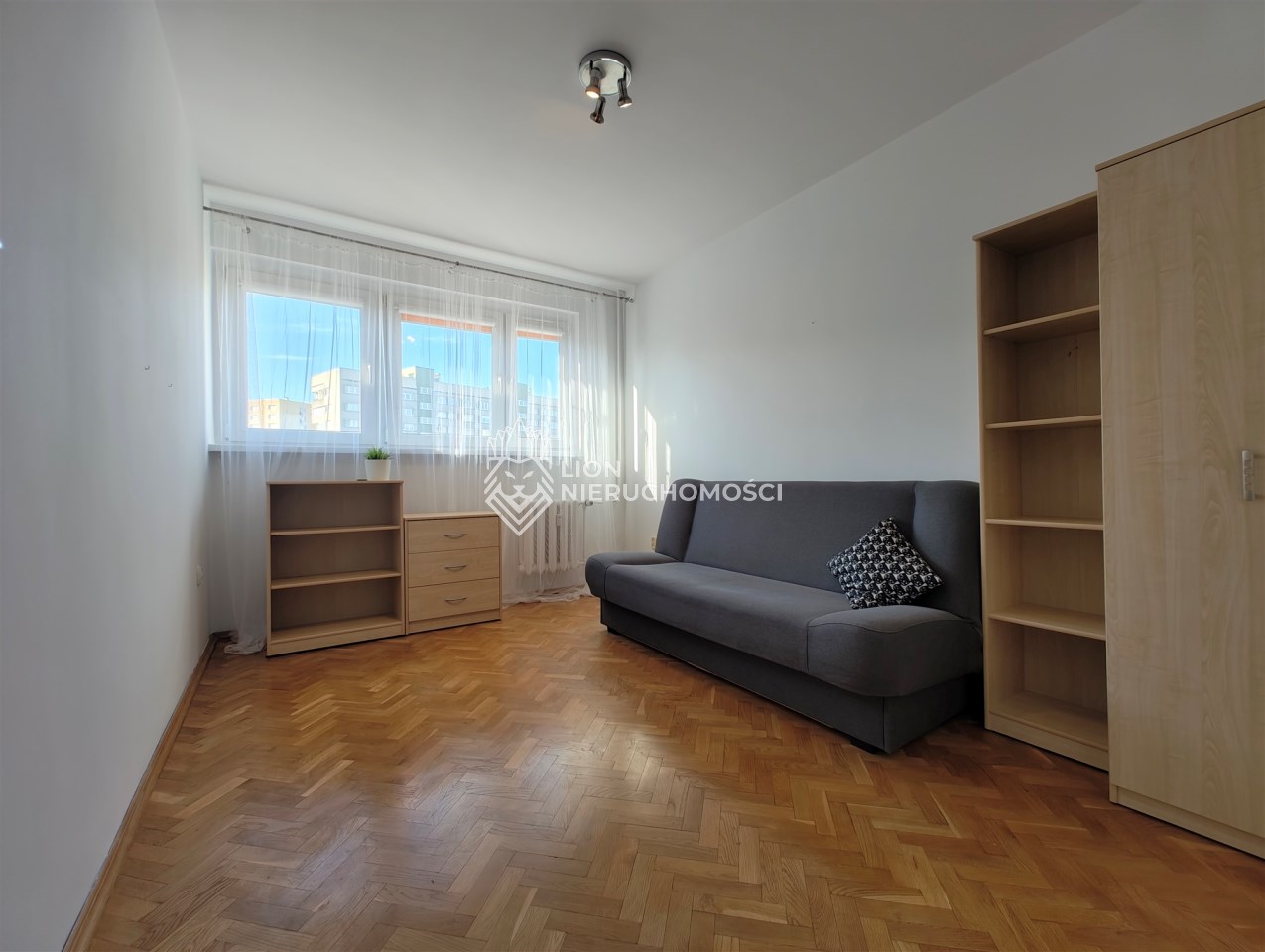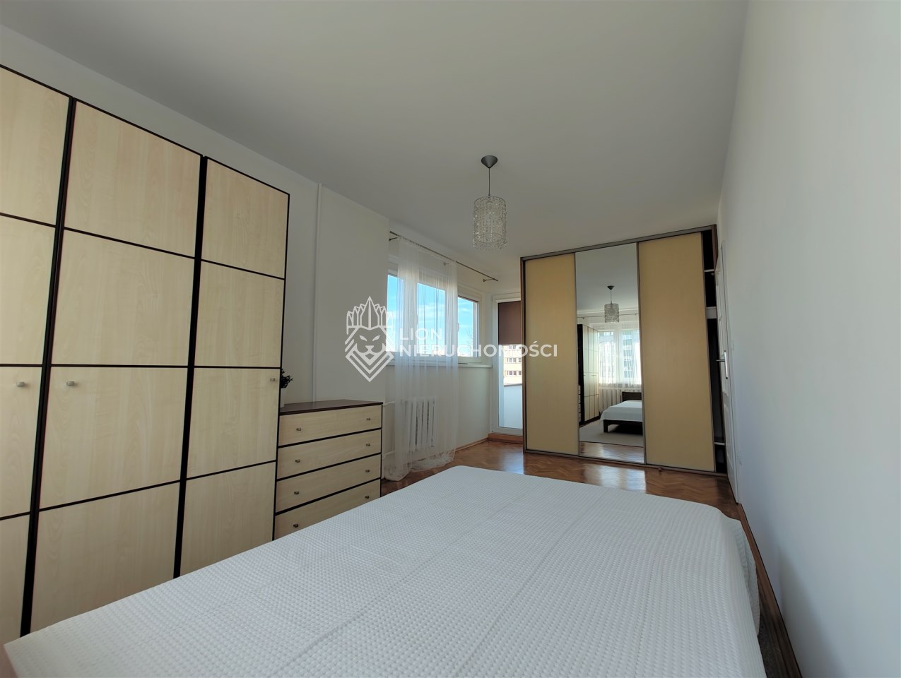 Przestronne pokoje o powierzchni ok. 18 m², 16 m² oraz 12 m² są ustawne i słoneczne. W całym mieszkaniu znajduje się elegancki dębowy parkiet. Instalacja elektryczna została wymieniona na miedzianą. W sypialni zamontowane rolety zaciemniające.