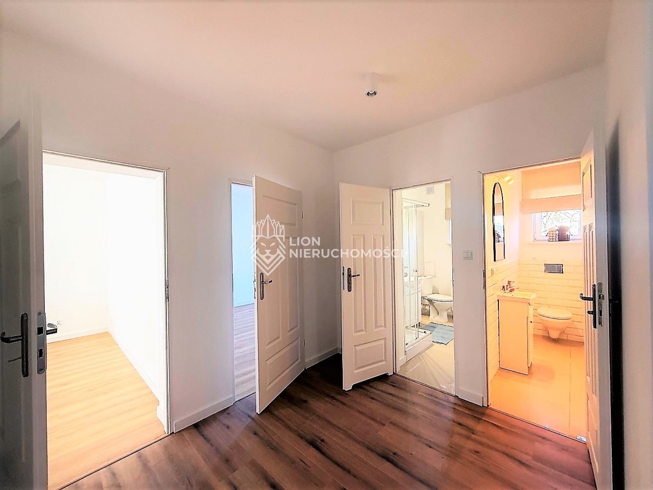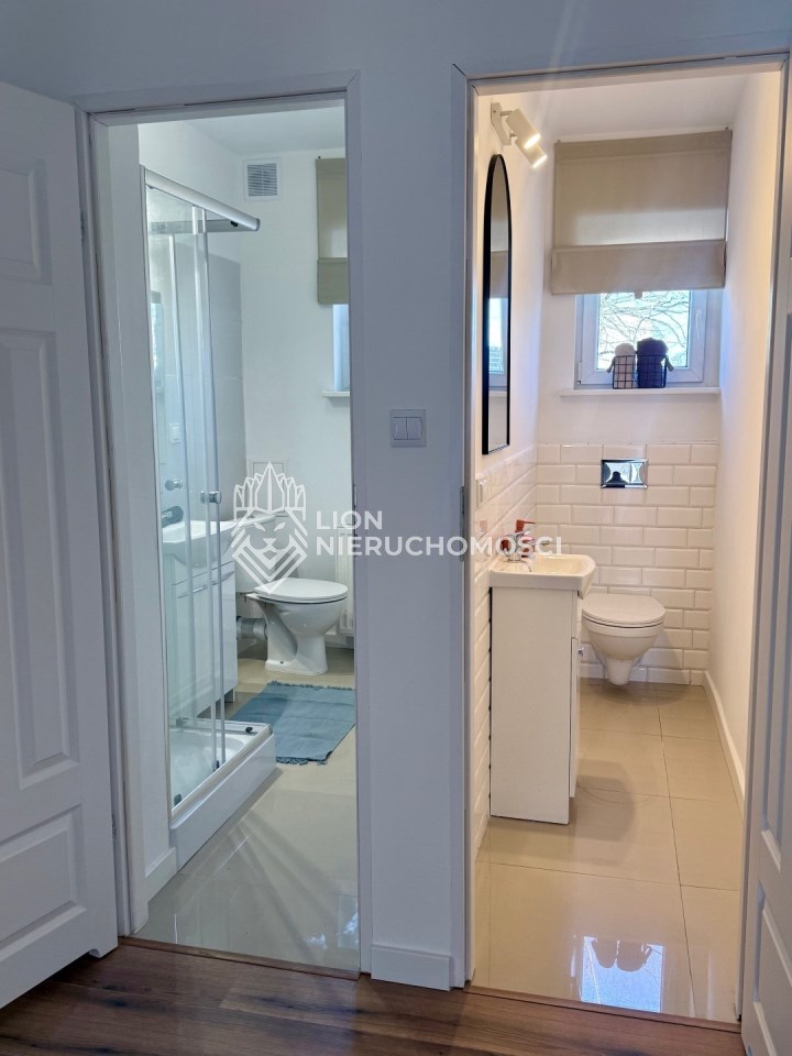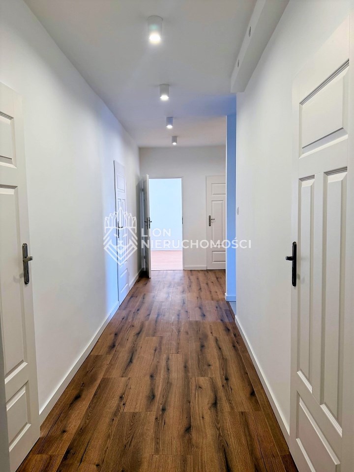 Ściany gładzone i malowane, w łazienkach, WC i kuchni z glazurą. Podłogi w łazienkach i kuchni gres, w pozostałych pomieszczeniach panele. Okna PCV z wystawami płn-płd.
