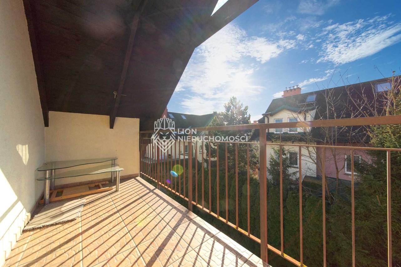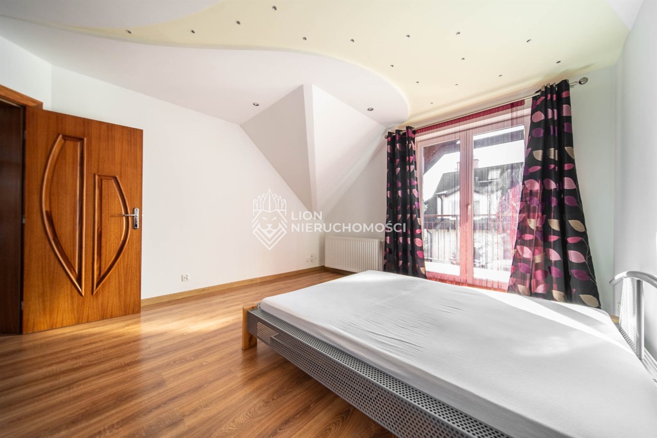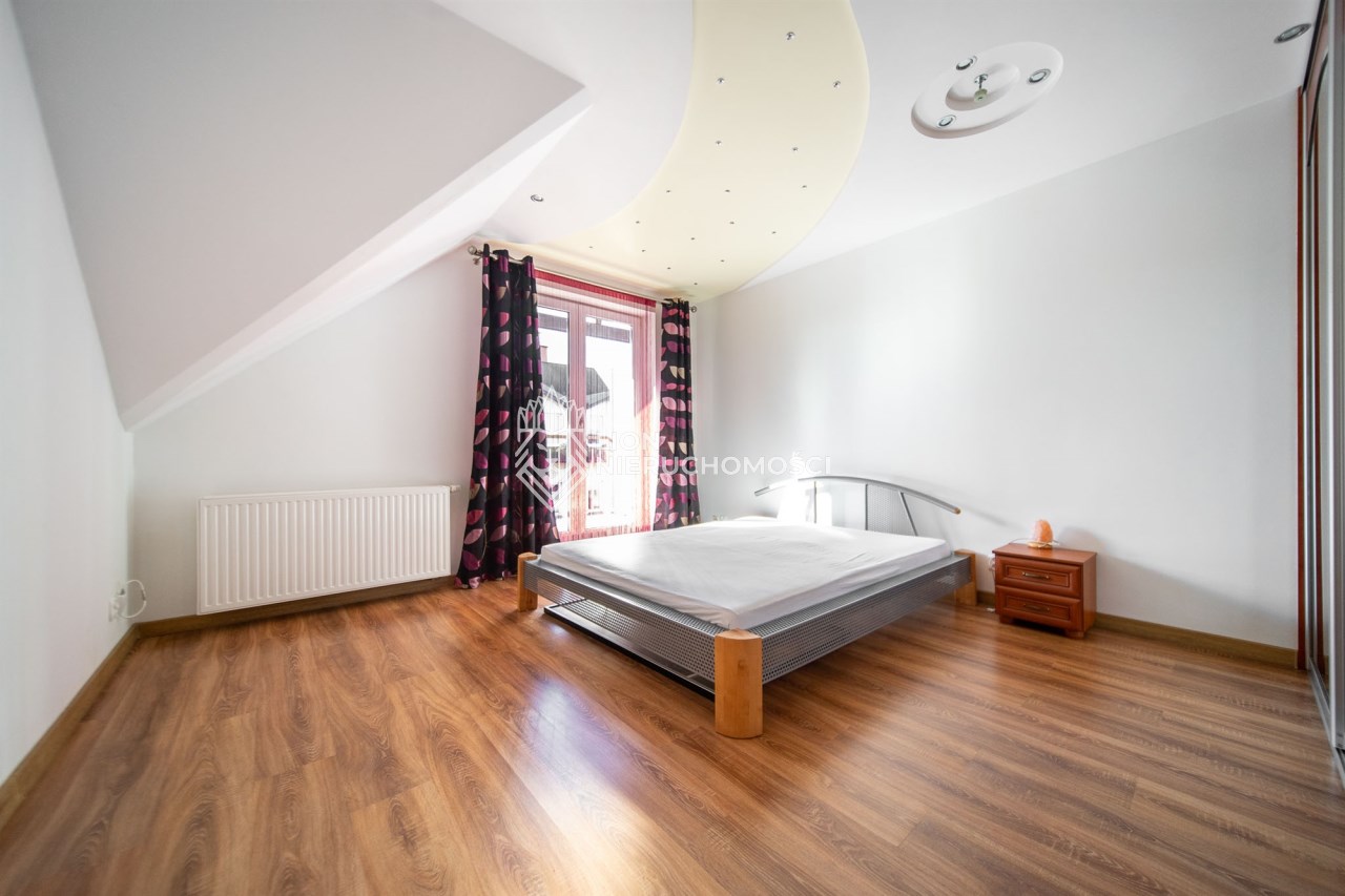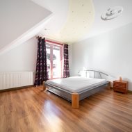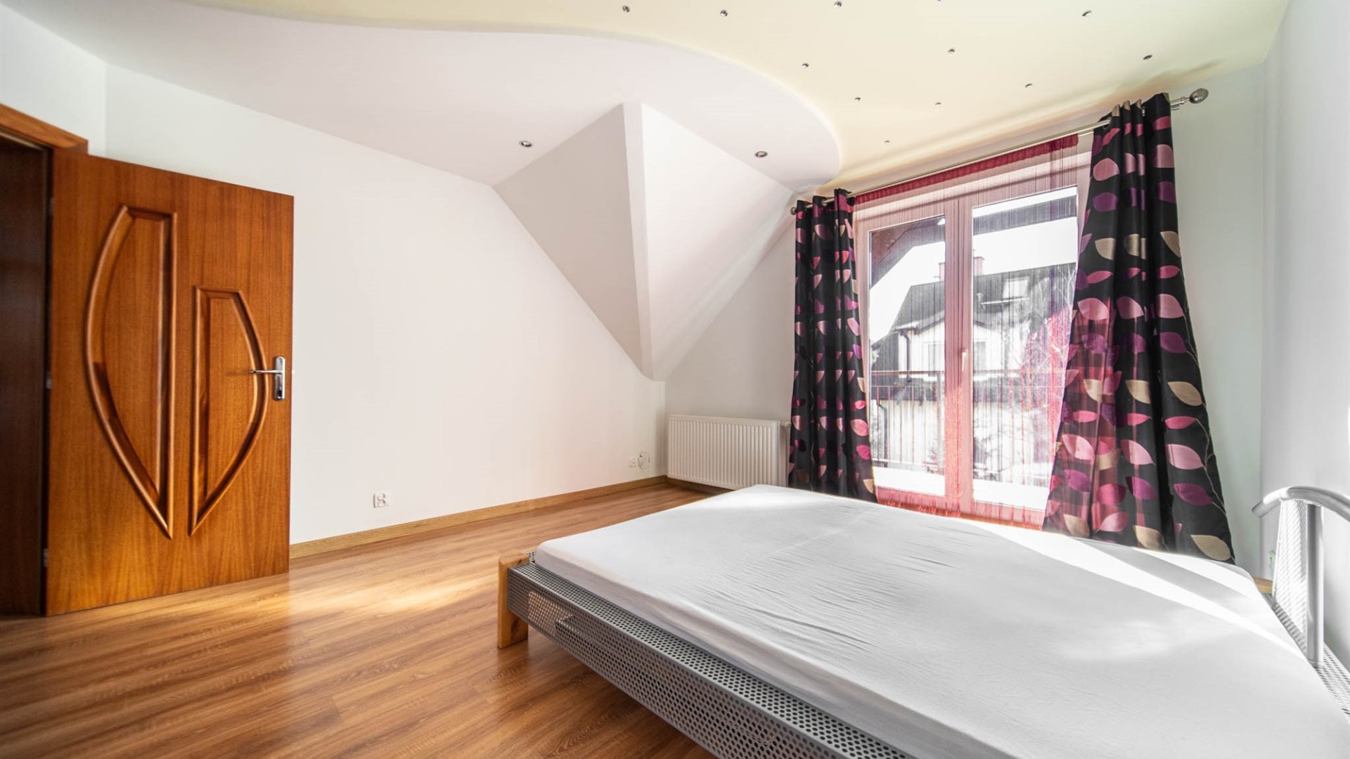 W sypialni duże dwuosobowe łóżko oraz pojemna szafa, z sypialni dostęp do sporego balkonu.