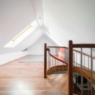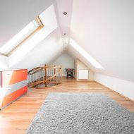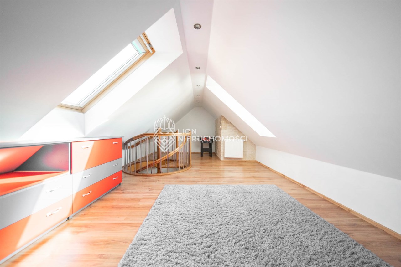 Sypialnia na drugim poziomie z licznymi zabudowami.